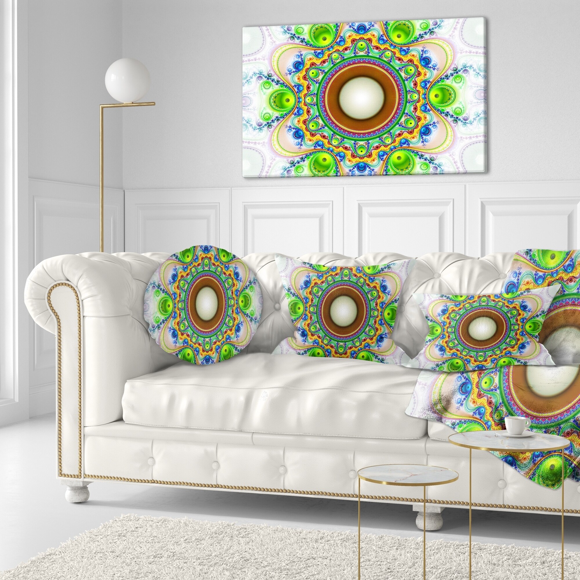 Decorative Throw Pillows for Couch Bed Sofa with Zip CoversAn easy, fun way to add a pop of color or bring new life to any room in your home or office is with these beautiful Abstract throw pillows. Dress up your bed, sofa or lounger with this decorative design art pillows. Perfect as Contemporary bedroom décor, lounge décor Modern living room décor. It adds a fun accent to any room. Throw pillows really do work wonders: they can transform any room from uninviting discomfort to warm and welcoming. And they really do go almost anywhere - arrange a couple on the couch or sofa, place one in your overstuffed chair for extra coziness, toss a couple on the bed and prop yourself up for a great read.These Abstract pillow is printed using High Color Density Italian inks to create a vibrantly Free Shipping Over $49.99* Details Designart 'Green Fractal Circles and Waves' Abstract Throw Pillow Product Description: Decorative Throw Pillows for Couch Bed Sofa with Zip Covers An easy, fun way to add a pop of color or bring new life to any room in your home or office is with these beautiful Abstract throw pillows. Dress up your bed, sofa or lounger with this decorative design art pillows. Perfect as Contemporary bedroom décor, lounge décor Modern living room décor. It adds a fun accent to any room. Throw pillows really do work wondersthey can transform any room from uninviting discomfort to warm and welcoming. And they really do go almost anywhere - arrange a couple on the couch or sofa, place one in your overstuffed chair for extra coziness, toss a couple on the bed and prop yourself up for a great read. These Abstract pillow is printed using High Color Density Italian inks to create a vibrantly colored, sharp artwork. Features: Perfect accent to any furniture piece Basic shapes with a modern graphic design twist Printed on 100% light weight polyester Cushion filled with 100% polyester fill Wrinkle resistant fabric Zip Closure so you can remove the pillow from its' cover Down-like comfort - Odorless 100% Hypoallergenic Machine Wash Cold Separately, Gently Cycle Only, No bleach, hang to dry Print on Demand with High Density Italian Ink Available in Several sizes Attribute :Contemporary, Modern, Transitional Subject Abstract, Impressionism, Geometric