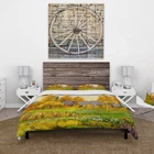 There is just nothing better than a beautiful, inviting comfortable bed after a long day. This Nature bed set is created using the richest colors stemming from high density Italian ink and the softest fabrics, making it the perfect way to spruce up your bedroom while keeping it ultra-comfortable. This luxurious Landscapes bed design is made with 100% microfiber polyester, making it ultra-soft to ensure you sleep comfortably all night long. This Lake House set includes 1 Bed Cover and 2 Shams and is available in twin, queen and king sizes. This Lake House Duvet Cover Set Bedding Set is easily integrated into your already decorated space.Features:Printed using High Density Italian Ink making the colors extra vibrantMade from ultra-soft, lightweight 100% microfiber polyesterWrinkle resistant Free Shipping Over $49.99* Details Designart 'Haystacks On Orange Fields II' Lake House Duvet Cover Set Product Description: There is just nothing better than a beautiful, inviting comfortable bed after a long day. This Nature bed set is created using the richest colors stemming from high density Italian ink and the softest fabrics, making it the perfect way to spruce up your bedroom while keeping it ultra-comfortable. This luxurious Landscapes bed design is made with 100% microfiber polyester, making it ultra-soft to ensure you sleep comfortably all night long. This Lake House set includes 1 Bed Cover and 2 Shams and is available in twin, queen and king sizes. This Lake House Duvet Cover Set Bedding Set is easily integrated into your already decorated space. Features: Printed using High Density Italian Ink making the colors extra vibrant Made from ultra-soft, lightweight 100% microfiber polyester Wrinkle resistant fabric. Down-like comfort, odorless The Country bed set includes one bed cover and two standard pillow shams Creates a complete and stylish look in your room The elegant and soft colors are both trendy and fun to brighten and update your bedroom Made in Canada Decorative Wall Art and throw pillows to match this set are available but sold separately Actual comforter inserts and pillow inserts are not included This set includes the two pillow shams and comforter cover only. Made from polyester Lake House Duvet Cover Set Color is Orange Lake House, Landscapes style Non-reversible Set Includes: Duvet Cover Shams Pillow Cases not included but can be buy separately Comforter Insert NOT INCLUDED Twin Dimensions: 1 Duvet Cover68 inches wide x 88 inches long 1 Standard Sham16 inches wide x 26 inches long Queen Dimensions: 1 Duvet Cover88 inches wide x 88 inches long 2 Standard Shams16 inches wide x 26 inches long King Dimensions: 1 Duvet Cover104 inches wide x 88 inches long 2 King Shams20 inches wide x 36 inches long Fabric Care Instructions: Machine wash on cold gentle cycle. Wash separately on first wash. Use only non- chlorine bleach when needed. Tumble dry low. Remove promptly.
