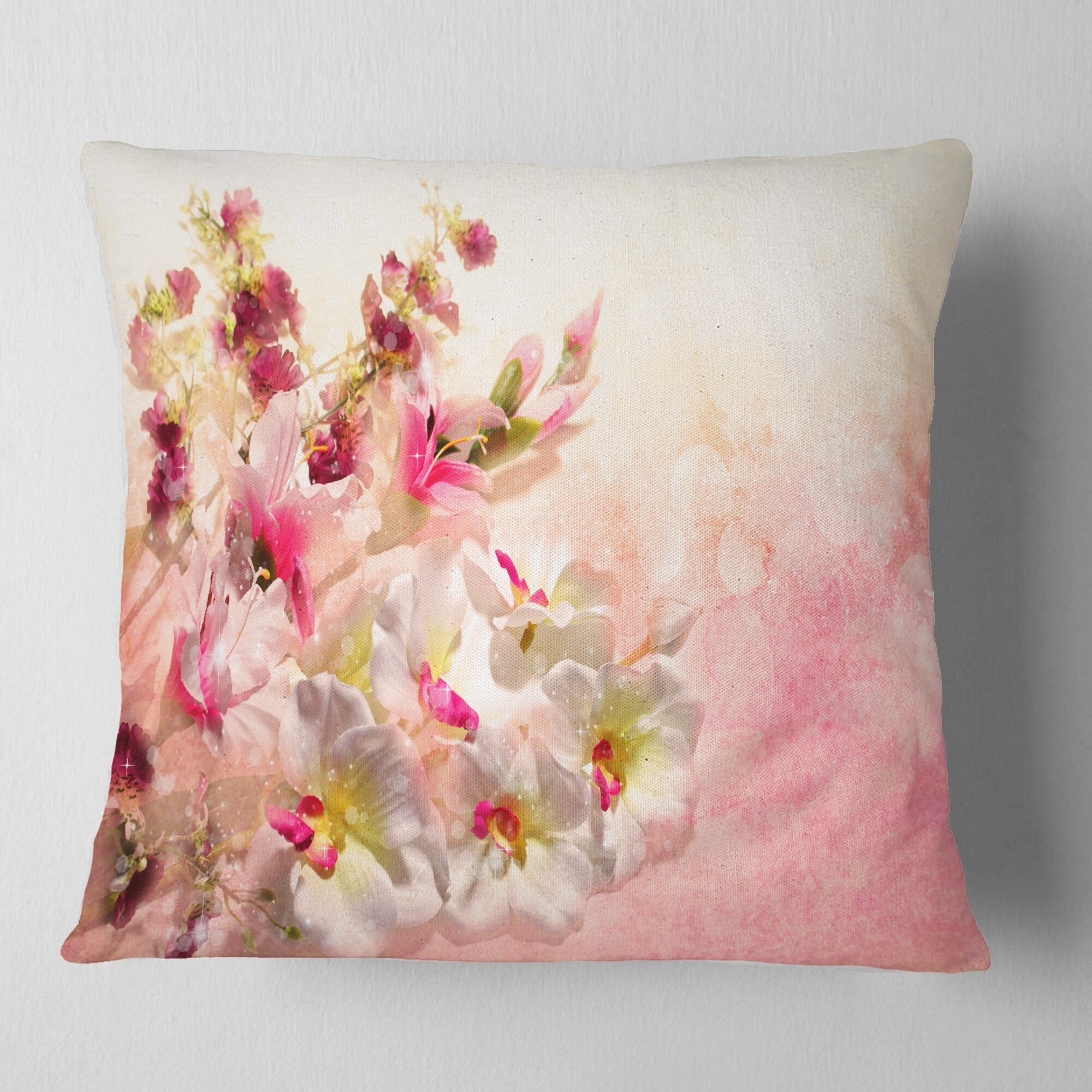 Decorative Throw Pillows for Couch Bed Sofa with Zip CoversAn easy, fun way to add a pop of color or bring new life to any room in your home or office is with these beautiful Floral throw pillows. Dress up your bed, sofa or lounger with this decorative design art pillows. Perfect as Farmhouse bedroom décor, lounge décor Traditional living room décor. It adds a fun accent to any room. Throw pillows really do work wonders: they can transform any room from uninviting discomfort to warm and welcoming. And they really do go almost anywhere - arrange a couple on the couch or sofa, place one in your overstuffed chair for extra coziness, toss a couple on the bed and prop yourself up for a great read.These Floral pillow is printed using High Color Density Italian inks to create a vibrantly colored, Free Shipping Over $49.99* Details Designart 'Pink Bouquet of Flowers' Floral Throw Pillow Product Description: Decorative Throw Pillows for Couch Bed Sofa with Zip Covers An easy, fun way to add a pop of color or bring new life to any room in your home or office is with these beautiful Floral throw pillows. Dress up your bed, sofa or lounger with this decorative design art pillows. Perfect as Farmhouse bedroom décor, lounge décor Traditional living room décor. It adds a fun accent to any room. Throw pillows really do work wondersthey can transform any room from uninviting discomfort to warm and welcoming. And they really do go almost anywhere - arrange a couple on the couch or sofa, place one in your overstuffed chair for extra coziness, toss a couple on the bed and prop yourself up for a great read. These Floral pillow is printed using High Color Density Italian inks to create a vibrantly colored, sharp artwork. Features: Perfect accent to any furniture piece Basic shapes with a modern graphic design twist Printed on ultra smooth and 100% light weight polyester Cushion filled with 100% polyester fill Wrinkle resistant fabric Zip Closure so you can remove the pillow from its' cover Down-like comfort - Odorless 100% Hypoallergenic Machine Wash Cold Separately, Gently Cycle Only, No bleach, hang to dry Print on Demand with High Density Italian Ink Available in Several sizes Attribute :Farmhouse, Traditional, Modern Subject Floral, Landscapes, Country Charm