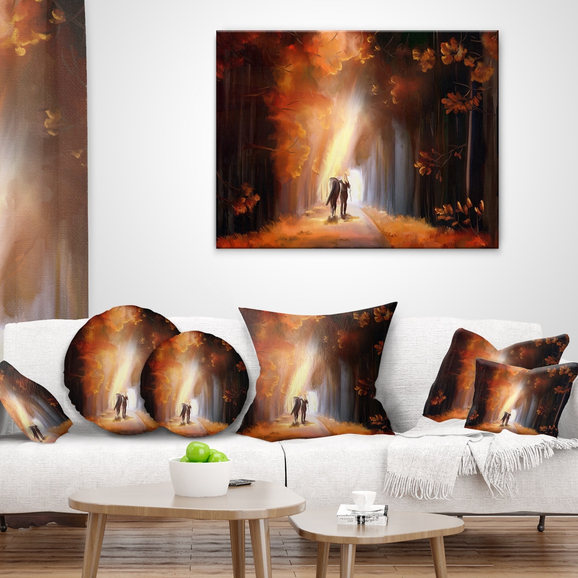 Decorative Throw Pillows for Couch Bed Sofa with Zip CoversAn easy, fun way to add a pop of color or bring new life to any room in your home or office is with these beautiful Landscape throw pillows. Dress up your bed, sofa or lounger with this decorative design art pillows. Perfect as Farmhouse bedroom décor, lounge décor Traditional living room décor. It adds a fun accent to any room. Throw pillows really do work wonders: they can transform any room from uninviting discomfort to warm and welcoming. And they really do go almost anywhere - arrange a couple on the couch or sofa, place one in your overstuffed chair for extra coziness, toss a couple on the bed and prop yourself up for a great read.These Landscapes pillow is printed using High Color Density Italian inks to create a vibrantly Free Shipping Over $49.99* Details Designart 'Walking in Park' Landscape Printed Throw Pillow Product Description: Decorative Throw Pillows for Couch Bed Sofa with Zip Covers An easy, fun way to add a pop of color or bring new life to any room in your home or office is with these beautiful Landscape throw pillows. Dress up your bed, sofa or lounger with this decorative design art pillows. Perfect as Farmhouse bedroom décor, lounge décor Traditional living room décor. It adds a fun accent to any room. Throw pillows really do work wondersthey can transform any room from uninviting discomfort to warm and welcoming. And they really do go almost anywhere - arrange a couple on the couch or sofa, place one in your overstuffed chair for extra coziness, toss a couple on the bed and prop yourself up for a great read. These Landscapes pillow is printed using High Color Density Italian inks to create a vibrantly colored, sharp artwork. Features: Perfect accent to any furniture piece Basic shapes with a modern graphic design twist Printed on 100% light weight polyester Cushion filled with 100% polyester fill Wrinkle resistant fabric Zip Closure so you can remove the pillow from its' cover Down-like comfort - Odorless 100% Hypoallergenic Machine Wash Cold Separately, Gently Cycle Only, No bleach, hang to dry Print on Demand with High Density Italian Ink Available in Several sizes Attribute :Farmhouse, Traditional, Fine Art Giclee Subject Landscapes, Country Charrm,
