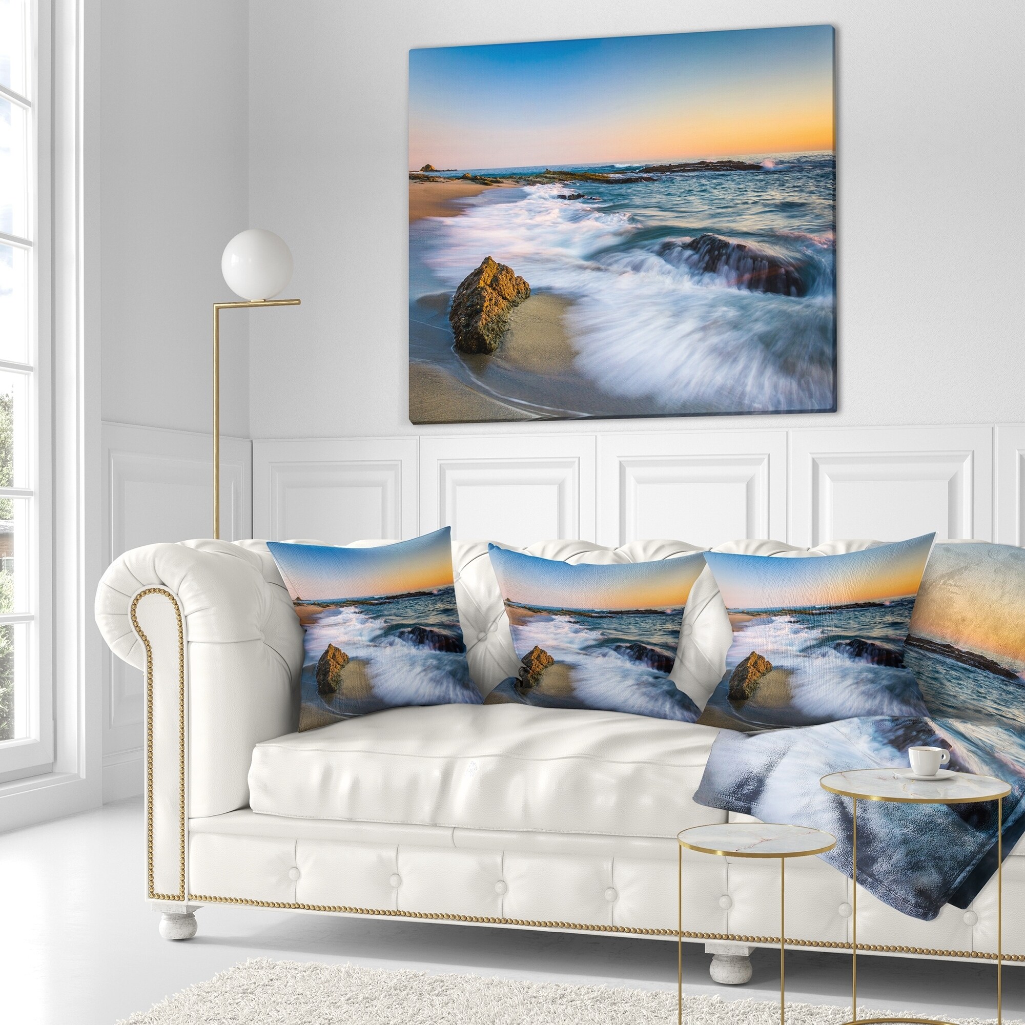 Decorative Throw Pillows for Couch Bed Sofa with Zip CoversAn easy, fun way to add a pop of color or bring new life to any room in your home or office is with these beautiful Sea & Shore throw pillows. Dress up your bed, sofa or lounger with this decorative design art pillows. Perfect as Coastal bedroom décor, lounge décor Beach living room décor. It adds a fun accent to any room. Throw pillows really do work wonders: they can transform any room from uninviting discomfort to warm and welcoming. And they really do go almost anywhere - arrange a couple on the couch or sofa, place one in your overstuffed chair for extra coziness, toss a couple on the bed and prop yourself up for a great read.These Sea & Shore pillow is printed using High Color Density Italian inks to create a vibrantly Free Shipping Over $49.99* Details Designart 'White Waves Crashing on Rocks' Seascape Throw Pillow Product Description: Decorative Throw Pillows for Couch Bed Sofa with Zip Covers An easy, fun way to add a pop of color or bring new life to any room in your home or office is with these beautiful Sea & Shore throw pillows. Dress up your bed, sofa or lounger with this decorative design art pillows. Perfect as Coastal bedroom décor, lounge décor Beach living room décor. It adds a fun accent to any room. Throw pillows really do work wondersthey can transform any room from uninviting discomfort to warm and welcoming. And they really do go almost anywhere - arrange a couple on the couch or sofa, place one in your overstuffed chair for extra coziness, toss a couple on the bed and prop yourself up for a great read. These Sea & Shore pillow is printed using High Color Density Italian inks to create a vibrantly colored, sharp artwork. Features: Perfect accent to any furniture piece Basic shapes with a modern graphic design twist Printed on 100% light weight polyester Cushion filled with 100% polyester fill Wrinkle resistant fabric Zip Closure so you can remove the pillow from its' cover Down-like comfort - Odorless 100% Hypoallergenic Machine Wash Cold Separately, Gently Cycle Only, No bleach, hang to dry Print on Demand with High Density Italian Ink Available in Several sizes Attribute :Coastal, Beach, Tropical Subject Sea & Shore, Nautical, Landscapes