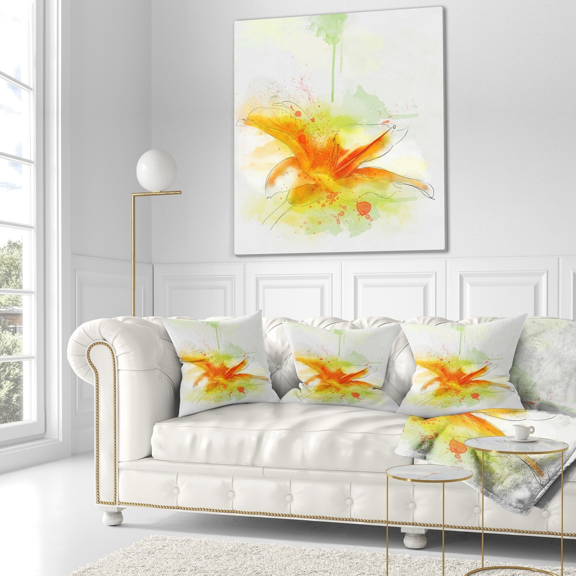 Decorative Throw Pillows for Couch Bed Sofa with Zip CoversAn easy, fun way to add a pop of color or bring new life to any room in your home or office is with these beautiful Floral throw pillows. Dress up your bed, sofa or lounger with this decorative design art pillows. Perfect as Farmhouse bedroom décor, lounge décor Traditional living room décor. It adds a fun accent to any room. Throw pillows really do work wonders: they can transform any room from uninviting discomfort to warm and welcoming. And they really do go almost anywhere - arrange a couple on the couch or sofa, place one in your overstuffed chair for extra coziness, toss a couple on the bed and prop yourself up for a great read.These Floral pillow is printed using High Color Density Italian inks to create a vibrantly colored, Free Shipping Over $49.99* Details Designart 'Yellow Red Flower with Color Splashes' Floral Throw Pillow Product Description: Decorative Throw Pillows for Couch Bed Sofa with Zip Covers An easy, fun way to add a pop of color or bring new life to any room in your home or office is with these beautiful Floral throw pillows. Dress up your bed, sofa or lounger with this decorative design art pillows. Perfect as Farmhouse bedroom décor, lounge décor Traditional living room décor. It adds a fun accent to any room. Throw pillows really do work wondersthey can transform any room from uninviting discomfort to warm and welcoming. And they really do go almost anywhere - arrange a couple on the couch or sofa, place one in your overstuffed chair for extra coziness, toss a couple on the bed and prop yourself up for a great read. These Floral pillow is printed using High Color Density Italian inks to create a vibrantly colored, sharp artwork. Features: Perfect accent to any furniture piece Basic shapes with a modern graphic design twist Printed on 100% light weight polyester Cushion filled with 100% polyester fill Wrinkle resistant fabric Zip Closure so you can remove the pillow from its' cover Down-like comfort - Odorless 100% Hypoallergenic Machine Wash Cold Separately, Gently Cycle Only, No bleach, hang to dry Print on Demand with High Density Italian Ink Available in Several sizes Attribute :Farmhouse, Traditional, Modern Subject Floral, Landscapes, Country Charm