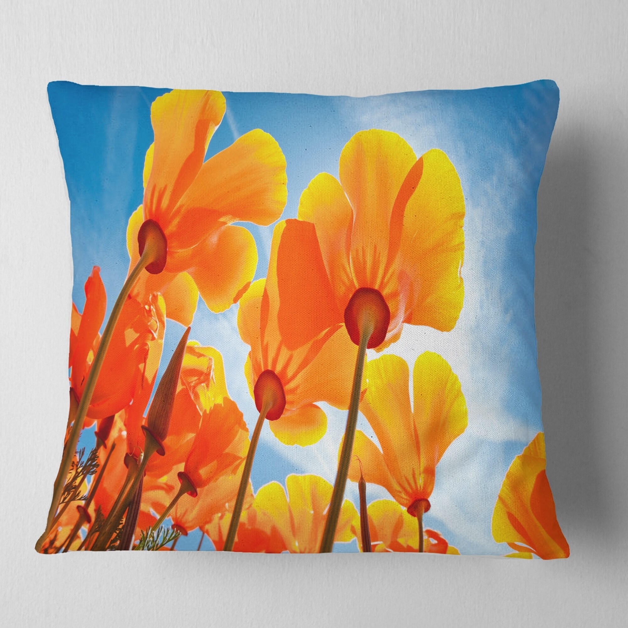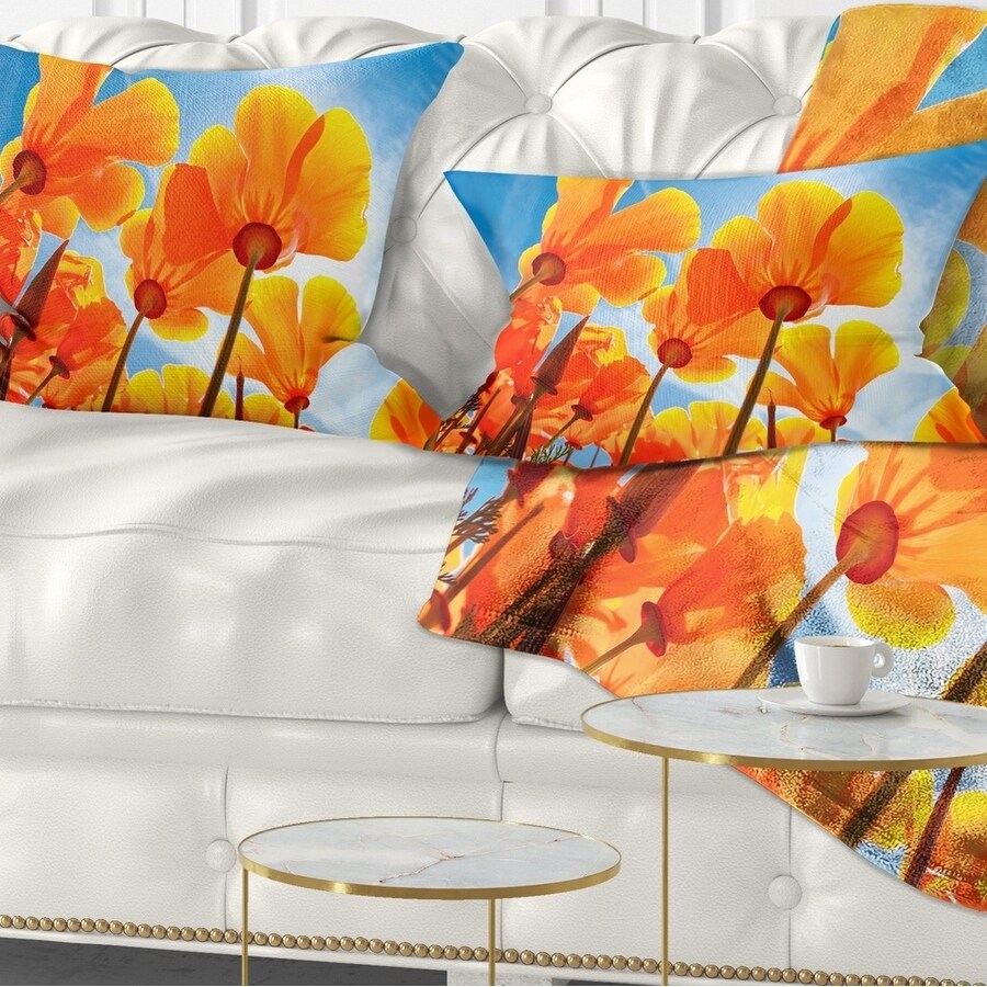 Decorative Throw Pillows for Couch Bed Sofa with Zip CoversAn easy, fun way to add a pop of color or bring new life to any room in your home or office is with these beautiful Floral throw pillows. Dress up your bed, sofa or lounger with this decorative design art pillows. Perfect as Farmhouse bedroom décor, lounge décor Traditional living room décor. It adds a fun accent to any room. Throw pillows really do work wonders: they can transform any room from uninviting discomfort to warm and welcoming. And they really do go almost anywhere - arrange a couple on the couch or sofa, place one in your overstuffed chair for extra coziness, toss a couple on the bed and prop yourself up for a great read.These Floral pillow is printed using High Color Density Italian inks to create a vibrantly colored, Free Shipping Over $49.99* Details Designart 'Yellow Spring Flowers on Blue' Floral Throw Pillow Product Description: Decorative Throw Pillows for Couch Bed Sofa with Zip Covers An easy, fun way to add a pop of color or bring new life to any room in your home or office is with these beautiful Floral throw pillows. Dress up your bed, sofa or lounger with this decorative design art pillows. Perfect as Farmhouse bedroom décor, lounge décor Traditional living room décor. It adds a fun accent to any room. Throw pillows really do work wondersthey can transform any room from uninviting discomfort to warm and welcoming. And they really do go almost anywhere - arrange a couple on the couch or sofa, place one in your overstuffed chair for extra coziness, toss a couple on the bed and prop yourself up for a great read. These Floral pillow is printed using High Color Density Italian inks to create a vibrantly colored, sharp artwork. Features: Perfect accent to any furniture piece Basic shapes with a modern graphic design twist Printed on 100% light weight polyester Cushion filled with 100% polyester fill Wrinkle resistant fabric Zip Closure so you can remove the pillow from its' cover Down-like comfort - Odorless 100% Hypoallergenic Machine Wash Cold Separately, Gently Cycle Only, No bleach, hang to dry Print on Demand with High Density Italian Ink Available in Several sizes Attribute :Farmhouse, Traditional, Modern Subject Floral, Landscapes, Country Charm