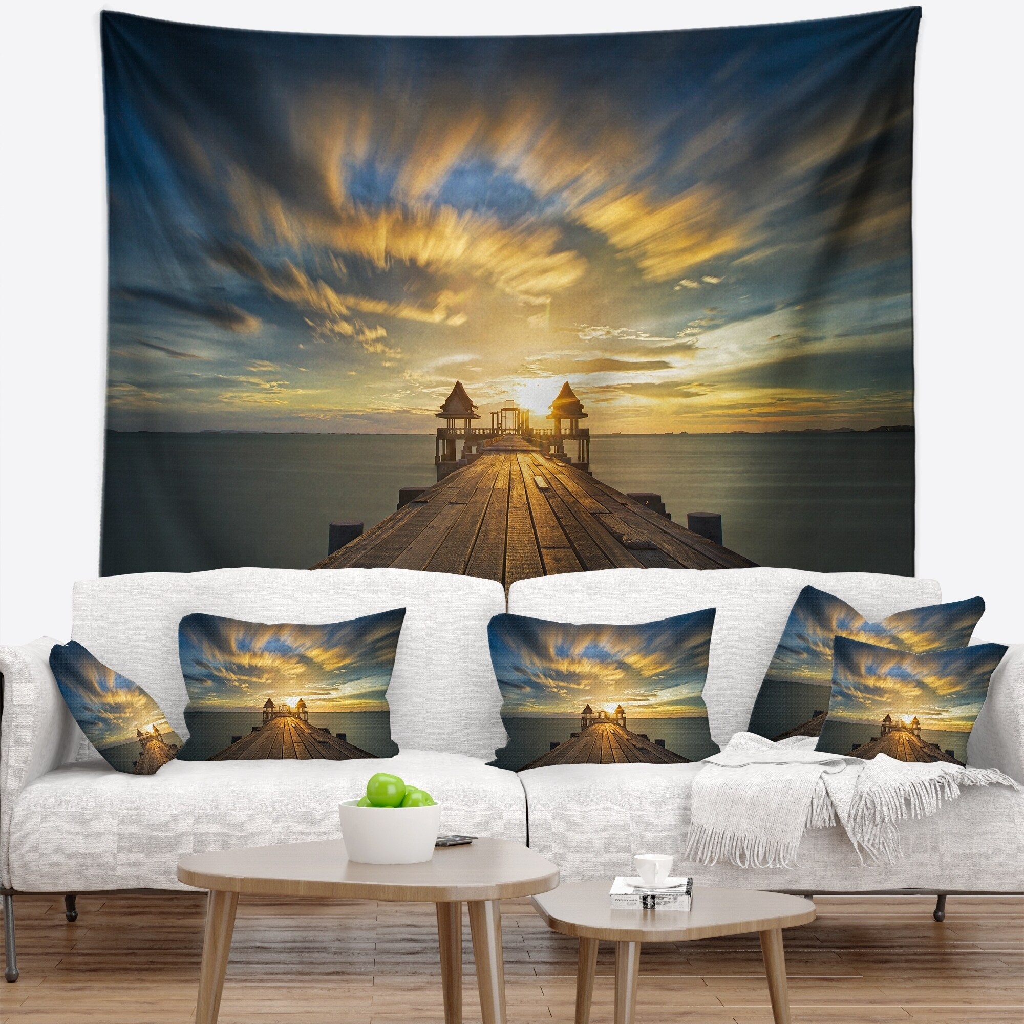 For a quick and easy home or office makeover, our wall tapestries are a great way to add a modern touch of décor and a pop of color to any room in your home or office. This Pier & Bridge wall tapestry is created on light weight, wrinkle resistant, polyester fabric making it very easy to install on any wall.These Coastal wall tapestry is printed using High Color Density Italian inks to create a vibrantly colored, sharp artwork.This beautiful Wooden Bridge under Dramatic Sky wall hanging artwork can also be used as a Bedspread, Bed Cover, Room Décor Tapestry, Beach Throw.This Coastal tapestry will easily change the plainest wall into an art display. This tapestry serves as a beautiful piece of wall art and through our vast selection of designs and such easy hanging, can be changed Free Shipping Over $49.99* Details Designart 'Wooden Bridge under Dramatic Sky' Pier Seascape Wall Tapestry Product Description: For a quick and easy home or office makeover, our wall tapestries are a great way to add a modern touch of décor and a pop of color to any room in your home or office. This Pier & Bridge wall tapestry is created on light weight, wrinkle resistant, polyester fabric making it very easy to install on any wall. These Coastal wall tapestry is printed using High Color Density Italian inks to create a vibrantly colored, sharp artwork. This beautiful Wooden Bridge under Dramatic Sky wall hanging artwork can also be used as a Bedspread, Bed Cover, Room Décor Tapestry, Beach Throw. This Coastal tapestry will easily change the plainest wall into an art display. This tapestry serves as a beautiful piece of wall art and through our vast selection of designs and such easy hanging, can be changed frequently with the seasons or simply your mood. Features Created on 100% lightweight polyester fabric Anti-wrinkle Easy to hang Vibrant rich colors and sharp details Available in multiple sizes and designs Print on Demand with High Density Italian Ink Available in Several sizes Attribute Coastal, Beach, Landscapes Subject Coastal, Sea & Shore, Nautical Care Instructions: - Hand wash or machine wash on gentle cycle.