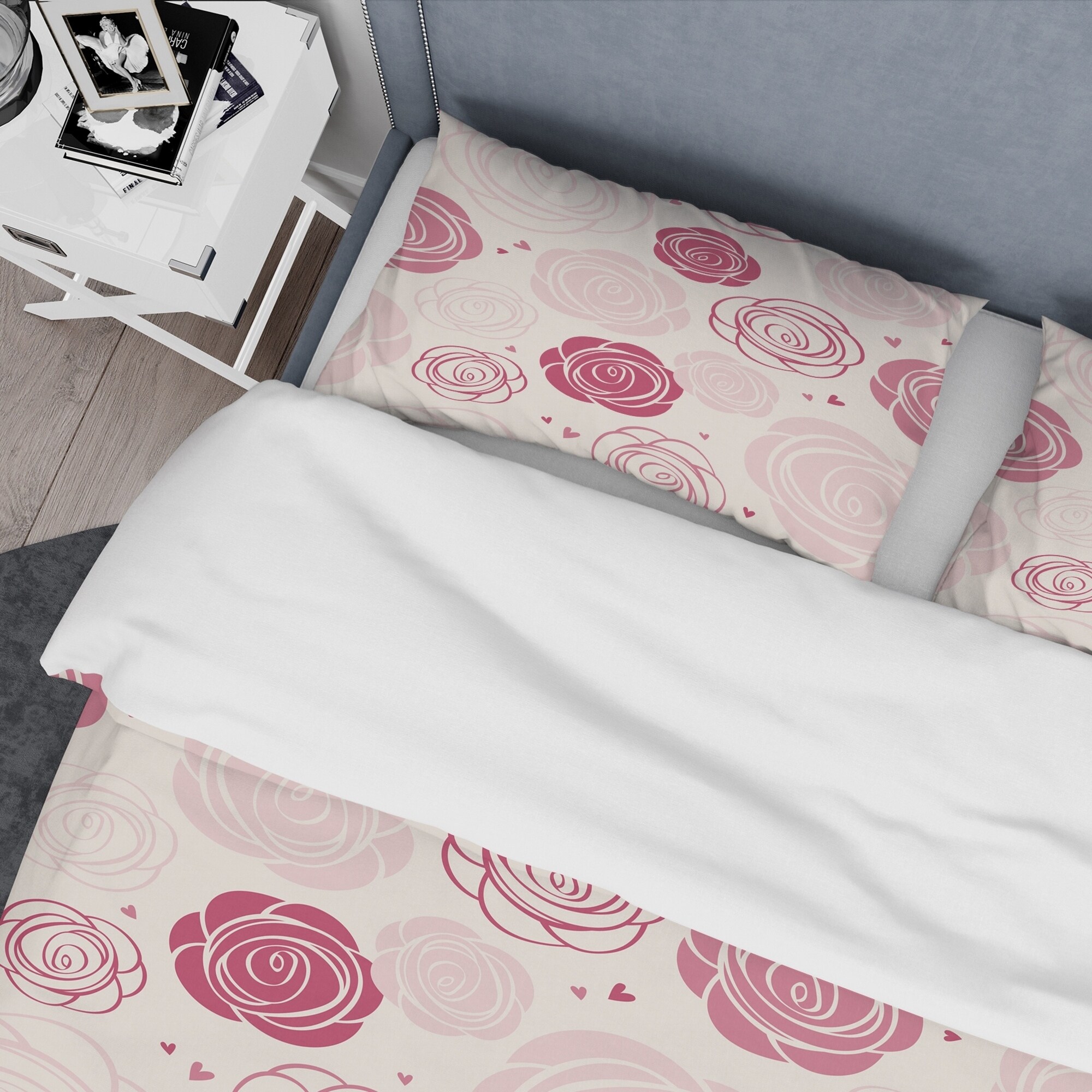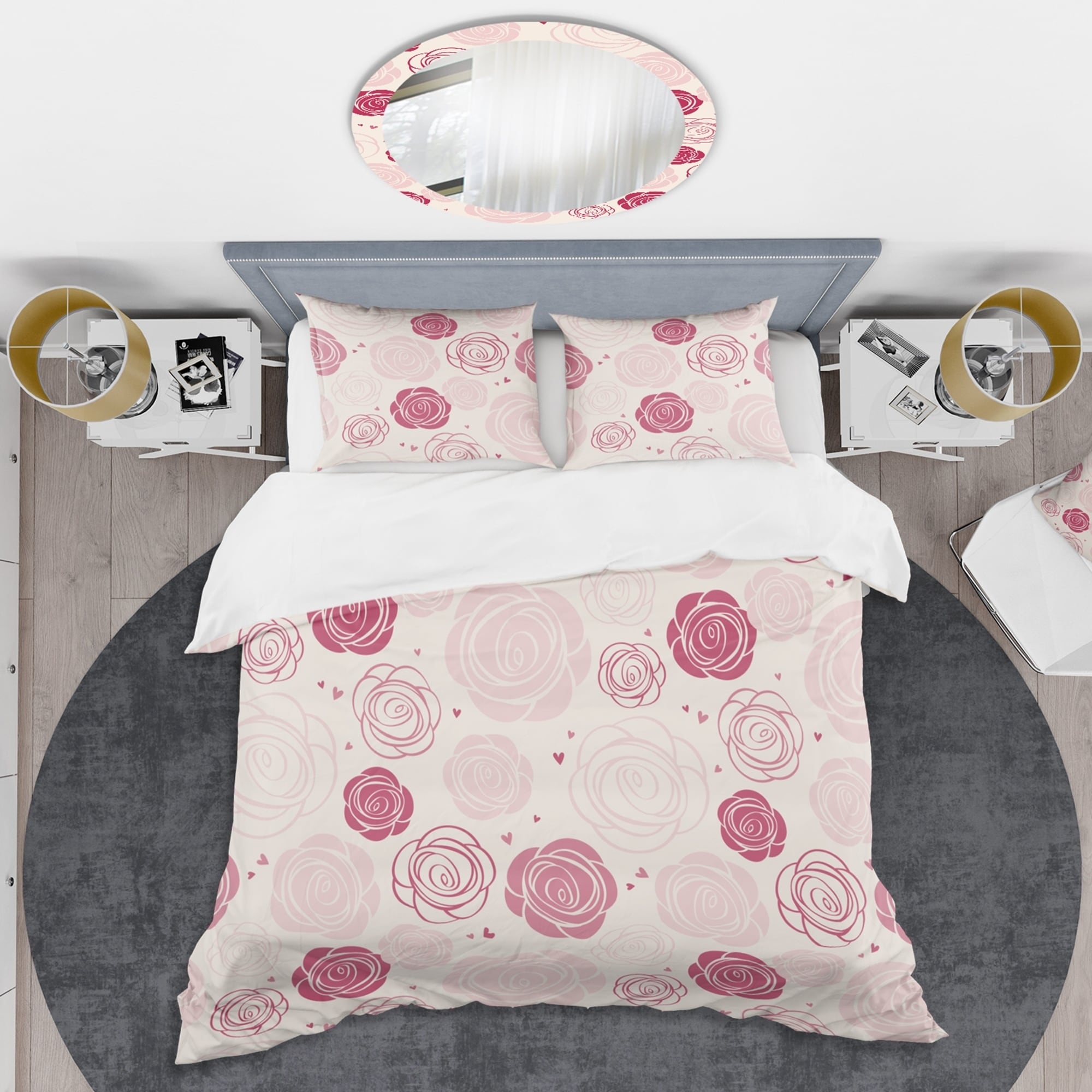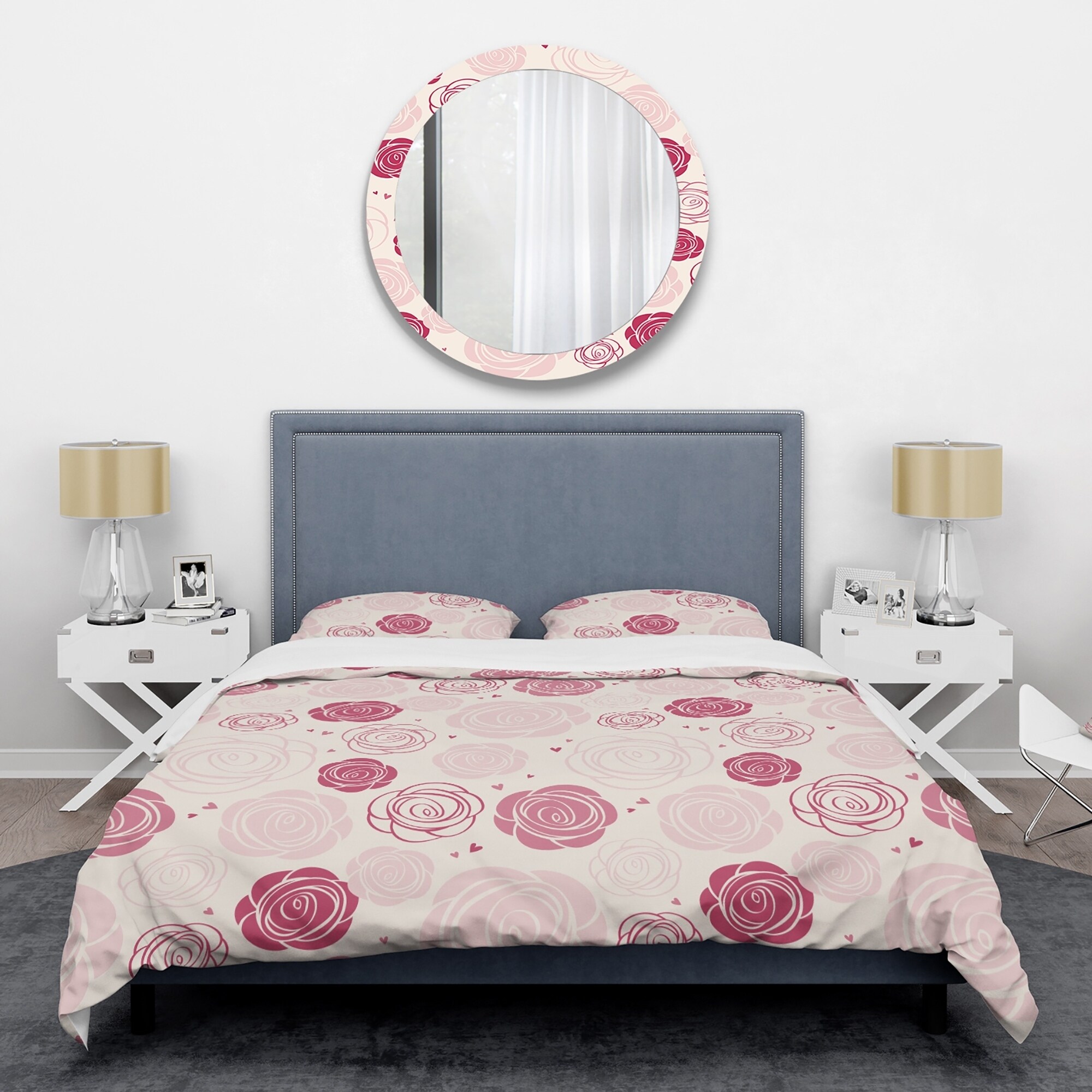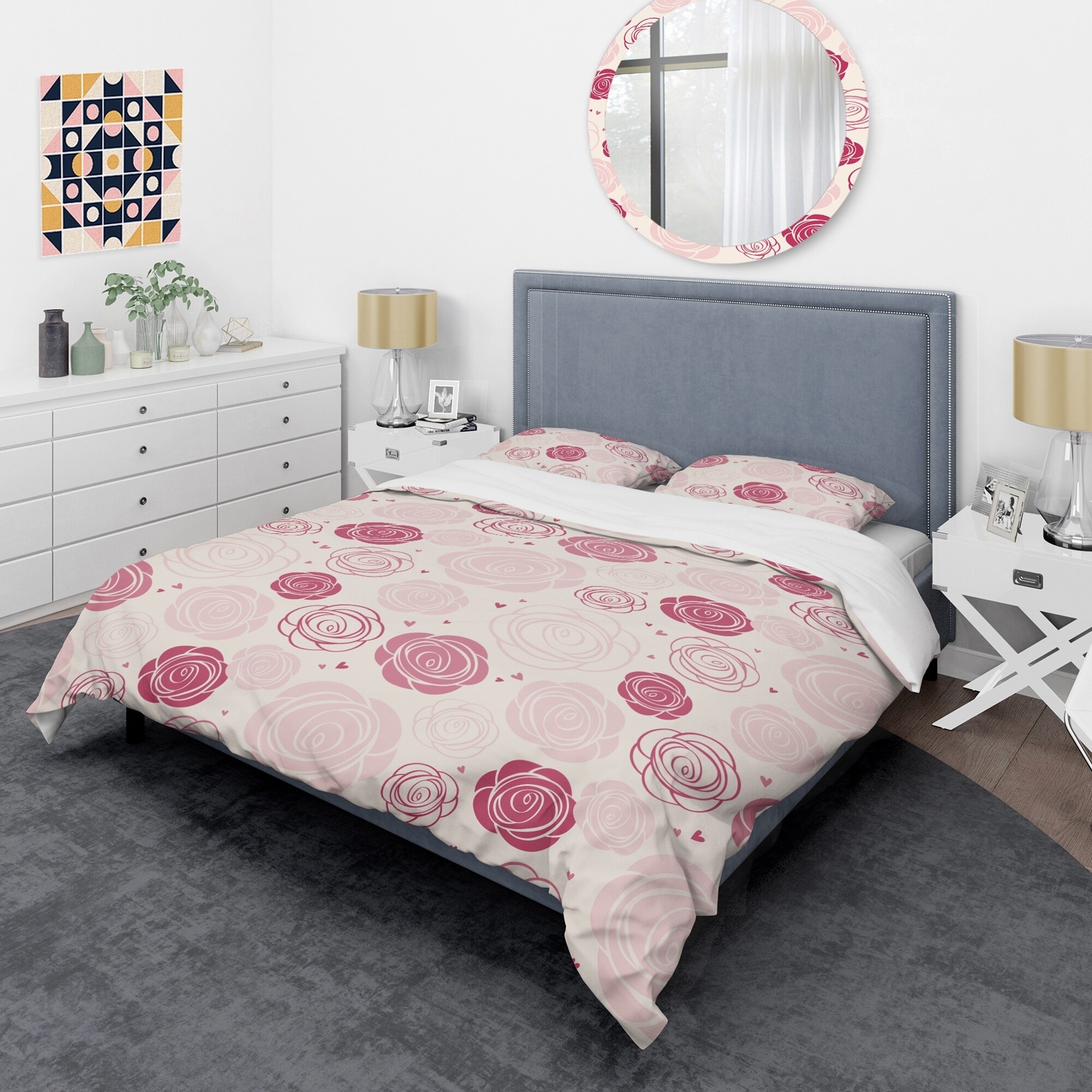 Transform your bedroom into a cozy sanctuary with this Designart 'roses pattern' Mid-Century Duvet Cover Set. Crafted from the softest 100% microfiber polyester with high density Italian ink, this luxurious set is ultra-soft and wrinkle-resistant for ultimate comfort. The elegant and stylish abstract design is available in twin, queen, and king sizes, and includes one duvet cover and two pillow shams. Made in Canada, this set is perfect for adding a touch of modern abstract style to your already decorated space.Features: Ultra-soft and lightweight 100% microfiber polyester material with high density Italian ink provides vibrant colors and down-like comfort. The set includes one duvet cover and two standard pillow shams in a modern abstract design to brighten and update your bedroom. Free Shipping Over $49.99* Details Designart 'roses pattern' Mid-Century Duvet Cover Set Product Description: Transform your bedroom into a cozy sanctuary with this Designart 'roses pattern' Mid-Century Duvet Cover Set. Crafted from the softest 100% microfiber polyester with high density Italian ink, this luxurious set is ultra-soft and wrinkle-resistant for ultimate comfort. The elegant and stylish abstract design is available in twin, queen, and king sizes, and includes one duvet cover and two pillow shams. Made in Canada, this set is perfect for adding a touch of modern abstract style to your already decorated space. Features: Ultra-soft and lightweight 100% microfiber polyester material with high density Italian ink provides vibrant colors and down-like comfort. The set includes one duvet cover and two standard pillow shams in a modern abstract design to brighten and update your bedroom. Available in twin, queen, and king sizes. Made in Canada. Comforter inserts and pillow inserts are not included. Product Details: MaterialPolyester. PatternAbstract. ColorPink. StyleModern Abstract, Mid-Century Modern, Abstract. ReversibleNo. Dimensions: King1 Duvet Cover - 104 inches wide x 88 inches long; 2 King Shams - 20 inches wide x 36 inches long. Queen1 Duvet Cover - 88 inches wide x 88 inches long; 2 Standard Shams - 16 inches wide x 26 inches long. Twin1 Duvet Cover - 68 inches wide x 88 inches long; 1 Standard Sham - 16 inches wide x 26 inches long. Care Instructions: Machine wash separately on cold gentle cycle. Use only non-chlorine bleach when needed. Tumble dry low and remove promptly.