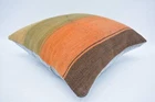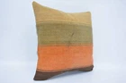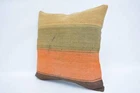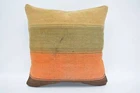 Designer Pillows, 16"x16" Orange Pillow Case, Turkish Kilim Pillow