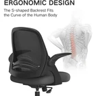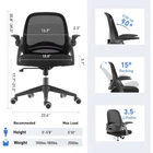 Color Black Brand Hbada Product Dimensions 19.7"D x 19.7"W x 21.3"H Style Modern Special Feature Adjustable Height, Ergonomic, Swivel 250lb weight limit Space Saving _ If you're looking for a office chair that can save space, then this is the perfect option for you! It has armrests that can be flipped up and slide the desk chair under the desk when not in use. Now you don't have to worry about your limited space! Get this space saving chair and enjoy the extra room! Soft & Wear Resistance Cushions This chair features thickened layers of natural sponge cushions , which makes it soft and highly elastic, not easily collapses, and abrasion-resistant fabric wrapping can be used for a longer period of time. Breathable and Supportive Back The back of the chair is made of breathable mesh fabric, which prevents sweat and discomfort when sitting for long periods. The ergonomic backrest is designed to fit the natural curve of the lower back, helping back support to maintain your posture.