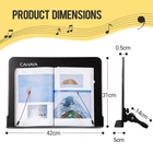 HEAVY DUTY METAL BOOK STAND: table top stand is made of durable metal. Package includes 1 x bookplate, 1 x detachable desktop support. 2inch DEEP TRAY with METAL SPRING ARM EXTENSIONS keeps music sheets or thick books in place simultaneously read your recipes and has your hands free whilst playing guitar or cooking! FLEXIBLE VIEWING ANGLE: tilting bookplate can be adjusted through knobs to any proper and comfortable viewing angle which helps to keep the correct posture so that the spine is healthy. Children can effectively correct bad writing posture. So that it can effectively prevent children's . PANEL DIMENSIONS (L*W*H) 16.5” x 2” x 12.2”, holding A4 or US letter size papers books or documents with ease. It comes with a carrying bag for storage. Fits for home, school, office, library use. VERSATILE: Multi-function reading stand can be used for holding sheet music books, cookbook, textbook, , tablature, catalogs, magazines, painting papers, documents, laptop, iPad, etc.