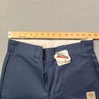 Crafted for versatility and durability, these Dickies 874 Work Pants in a classic navy blue offer a timeless addition to any wardrobe. The size 30x30 pants cater to a regular fit with a straight leg style, ensuring comfort and a sharp look for casual and business settings alike. The easy-care fabric blend of cotton and polyester means these dress pants are as practical as they are stylish,Designed to maintain a neat appearance with minimal effort. With a mid-rise waist and a flat front, the pants provide a flattering silhouette that complements a variety of body types. The solid pattern keeps the focus on the thoughtful design, which includes a convenient zip closure and the reliability of a brand known for quality workwear. Whether for everyday wear or specific work environments, these pants are a dependable choice for any occasion that calls for a polished, professional appearance.
