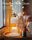 Eco-Friendly and Safe: With three 50-watt halogen warming bulbs (included). Say goodbye to traditional candles with our candle warmer lamp, which eliminates the need for open flames, smoke, soot, pollution, and safety concerns. The vintage candle lamp warmer is cleaner and more efficient. An ideal choice for sustainability and safety. Efficient & Dimmable, Scent Within Minutes: The candle warmer melts candle and wax from the top down using a 50W GU10 halogen bulb for fast and efficient fragrance distribution. With dimmer control of the aesthetic home decor lamp candle warmer, you can adjust the melting speed. The brighter the setting, the faster it melts. There are 4 light-up effects (25%-50%-75%-100% ) Convenient Timer Feature: Set it and forget it! Our lamp features a convenient 2H/4H/8H timer function, allowing you to schedule automatic shut-off times for added energy efficiency and peace of mind. Perfect Home Decor: Elevate your home decor with the sleek metal design of our wax melting lamp. The house warming wax melts warmer for scented wax serves as delicate and functional decorative lights for bedroom decor, living room decor aesthetic, studies, offices, yoga rooms, and more. Suitable for Most Sizes of Candles: The distance from the base of this candle warming lamp to the lampshade is 5.9 inches, with Yankee Candles and most different types of jar candles or wax. Say goodbye to candle flames and keep your house safe from fire hazards with the halogen bulb. (Candle not included) Best Gifts for Women: Candle wax warmer lamp package includes 1x candle burner lamp and 3x GU10 halogen bulbs (50W). Our candle warmer lamp for jar candles is the perfect gift for all kinds of festivals, this housewarming gifts new home is a good choice for your lover, family, friends. Dimmable candle warmer is suitable for Valentine's Day gifts, Mother's Day gifts, Birthday gifts, Teacher's Day gifts, Thanksgiving Day gifts, Christmas gifts, and Gifts for mom.