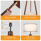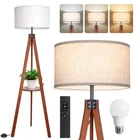 Stylish Design: wood tripod floor lamp fits in modern architecture vintage, retro, mid century or traditional decor, in particular. It has an unique stem with three square wooden legged that makes the lamp stable enough. The round linen lampshade (16" x 9") adds a touch of elegance and modernity to any room in your home or office Mid Century Dimmable (5-100%) Floor Lamp & Foot Switch: Compared with traditional non-dimmable floor lamps for the living room, our floor lamp is fully stepless dimmable, which is suitable for all room styles and usage situations. color temperature from 2700K to 6500K and dimming 5%-100%. Just press the remote control and then you can adjust the brightness of the Tripod floor lamp to what you want. 10.5-foot power cord with foot switch, it’s very convenient for you to adjust this standing lamp Floor Lamp with Shelf: It provides a shelf to store books, plants, or display art with a maximum loading capacity of 10 pounds. Select this lamp and enjoy a stylish addition to your master bedroom with an accent light for ambiance. Alternatively, place this tall standing lamp behind or beside the living room couch for reading Bulb Requirements: 9W Bulb is included in the package. With an E26 sized screw base, the bulb can be installed as desired. To get a better lighting effect, we suggest you using LED bulb 10W-12W, energy saving bulb 12W-20W, incandescent bulb 40W-60W (60W MAX) Different Lights Settings & Memory Function: The wood tripod floor lamp with remote control. It offers 4 color temperatures at warm, warm white, cool white, and daylight, which can come in handy when you want different light for a late evening, or if you are setting the mood for a dinner or event. The standing lamp has a memory function to remember your last setting when you turn the lamp back on. You don't need to cycle through every color temperature to get to the desired setting.