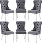 About this item Ergonomic High Back Chair: The comfortable dining chairs feature a curved high back that offers strong and comfortable support for your spine. With decorative rivet insets around the cushion and back, it exudes a sense of elegance and sophistication Luxurious Velvet Fabric: These wingback dining room chairs are crafted from premium velvet that is durable, gentle to the touch and will not fade. The chairs are filled with high-density sponge in the back and seat, providing ample and comfortable support Reliable Construction: The kitchen dining chair features a solid wood seat frame and metal legs, ensuring safety and a weight capacity of 280 pounds. Its adjustable foot pads allow for easy height adjustment to maintain balance on uneven floors and avoid scratches Rich Selectivity: This classic dining chair is available in various colors. It can be easily matched to different house styles and used in the living room, dining room, family room, study or library. It is a wonderful choice for your home decor and house-warming gift Easy Assembly & Notice: Assembling this upholstered dinner chair is a breeze with clear instructions, accessories, and tools. It can be assembled in 15 minutes, easy and labor-saving. Notice: Please unzip the seat bottom to take out all the legs and screws before installation