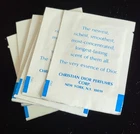 Vintage Dioressence sample package with 6 of 10 SEALED pouchettes with fragrance towelettes. Very good condition of box and sealed pouchettes. Selling AS IS. Very good condition for its age!