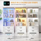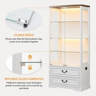 [Body Sensor Tri-color Light]:The display case is equipped with tri-color LED light, (blue, white, warm light), different light color to create a different atmosphere, to meet the user's personalized needs. Long press can adjust the brightness. Turn on the human body sensor light, when someone is near, it can automatically light up, to ensure that there is enough light in the dark, to avoid falling or collision, to improve safety; when the person leaves, the light will be automatically turned off in the set time, it's very convenient to use and save energy [Pop-up Glass Door]: The high transparency of the glass display door provides excellent visibility, allowing others to see the merchandise inside the display case at a glance, attracting their attention; the pop-up design makes it easier to open the door, and enhances the modern and upscale feel of the overall display case. The smooth glass surface is easy to clean and keeps the display case clear and transparent [Extra Large Storage Space]: Four tiers display design plus two drawers, fully utilize every square inch of space to meet your large number of merchandise display needs, perfect for home use. Adjustable shelf height design allows you to freely adjust according to the size and shape of your goods, increasing the adaptability of the cabinet. The drawer design allows you to store items that do not need to be exposed, keeping the display neat and beautiful [High Quality Material]: The display cabinet is made of a combination of tempered glass, acrylic and high quality wood, the tempered glass increases safety and durability, enhances visual appeal and has a higher impact. Acrylic is lightweight and not easily broken, its transparency makes the goods display excellent. High temperature and pressure treated wood composite material provides good stability and load bearing capacity for long service life [Multi-purpose and multi-scene application]: this display case can be applied in family living room, study, bedroom to display family albums, trophies, ornaments, collectibles, etc., to protect and beautify the items, which is both beautiful and practical, and coordinated with the home style. It can be used in office to display company's honor, staff's achievement, product samples and enhance corporate image, reflect professionalism and corporate culture [Easy and Detailed Assembly Instructions]:The product comes with detailed installation instructions and tools. During the installation process, make sure to follow every step of the instructions, when performing glass installation, it is recommended that two people collaborate on the installation to ensure safety. Please contact us first if you encounter any problem, we will solve the problem for you at the first time 3 Color LED Lights(White, Blue, Yellow)---Long Press to Adjust Brightness Human Body Sensor-Automatically senses when the light comes on and goes off Extra large storage capacity - 4 displays and 2 large drawers Keep your display cases clean and clear Convenient door opener presser Two large capacity drawers