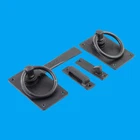 Enhance the and style of your gates with the Renovators Supply Black Wrought Iron Door Gate Turn Ring Flip Latches. These meticulously crafted colonial door latch reproductions exude vintage charm, perfect for adding character to barn doors, fences, and farmhouse gates alike. Crafted from durable wrought iron, these flip gate latches are designed to withstand outdoor elements with ease. A protective coating ensures longevity, making them ideal for outdoor use in any weather condition. The -sided latch opens in both directions, offering versatility and convenience for left or right-handed operation. Included mounting screws make installation a breeze, allowing you to affordably update old gates and doors without hassle. With an overall measurement of 6.5 inches in length, 5 inches in width, and 2 inches in projection, these latches are suitable for various door and gate sizes. our straightforward installation guide for easy setup. Simply mark the screw holes, drill the center hole for smooth spindle rotation, connect the main ring flip latch, adjust the spindle bar to fit your gate's thickness, and install the flip latch using the provided screws. Complete the installation by attaching the remaining latch parts and adjusting the flip latch for secure locking and unlocking. Elevate your curb appeal and create a lasting impression with the Renovators Supply Black Wrought Iron Door Gate Turn Ring Flip Latches. Whether you're securing a backyard fence, a shed door, or a pool gate, these heavy-duty latches offer reliability and style that endure. Upgrade your gate locks with confidence, knowing you've invested in quality craftsmanship and timeless design. Experience the perfect blend of functionality and aesthetics with these versatile gate latches, designed to complement any outdoor space with a touch of antique elegance. DURABLE MATERIAL - Crafted from sturdy wrought iron with a steel spindle bar, this black barn door gate latch is designed for durability and strength. While primarily recommended for indoor use, it can also be applied outdoors with a protective coating for added longevity. PRECISE MEASUREMENTS FOR UNIVERSAL FIT - With a latch bar length of 6.5 inches, a turn pull ring backplate width of 5 inches, and a projection of 2 inches, this versatile latch is suitable for gates of various sizes. It opens and closes in both directions, whether the gate swings left or right. PACK INCLUDES - The pack includes a black pull ring drop with a flip latch strap, a single pull ring, a spindle bar, latch bar pieces, and all necessary mounting hardware. The included screws are specifically designed for indoor use, ensuring a secure installation. EASY INSTALLATION - - Installing this flip gate latch is quick and easy. Simply place the latch on the gate, mark all screw holes, drill the center of the ring drop, insert the spindle bar through the central hole, connect it to both ring drops to enable smooth operation, and finally, secure the latch in place using the provided screws. With these straightforward steps, your installation is complete! BUY WITH CONFIDENCE - These door flip latches are carefully packed to avoid any damage in the transit process. Backed by a 100% Satisfaction for 60 days, you can trust in the quality and durability of Renovators Supply's products.
