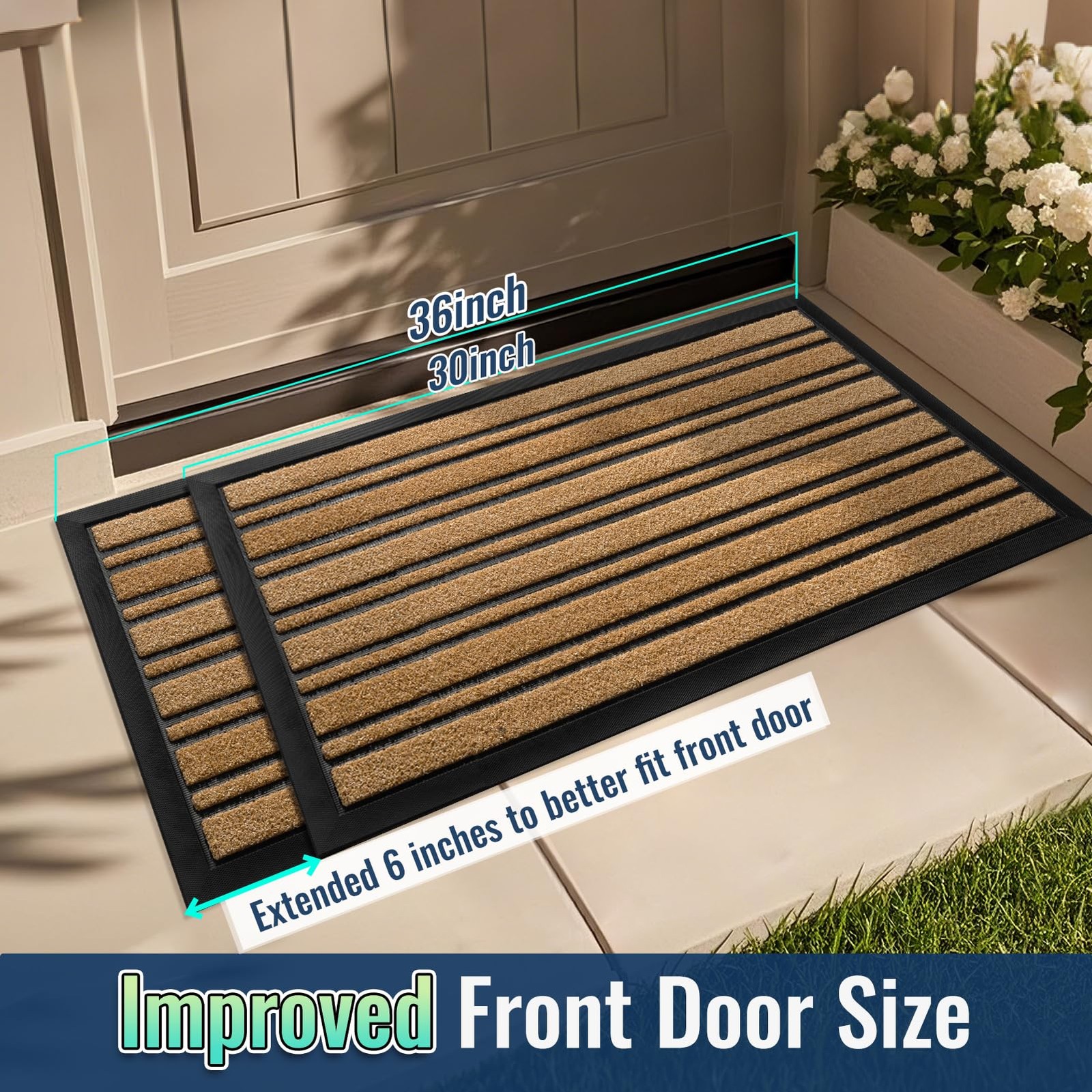 specialise in kinds of door mat for all scenes. We are committed to solving the problem of hygiene underfoot for our users, leaving the cleaning time to enjoy our lives! For indoor mat, suitable for Inside the entrance, Kitchen, Bathroom, Hallway, Office, Laundry room and other indoor scenes. For outdoor mat, suitable for Outside of the entryway, Patio, Porch, Garden, Garage and other outdoor scenes. Why choose us? Capture Dirt and Moisture: door mat is designed to prevent unwanted debris from being tracked into your home. The sturdy woven topside and deep grooves effectively capture dirt, mud, and moisture. Indoor door mat surface fibers scrape dust and debris from your shoes, boots, paws. Let the dirt stay out. Non Slip Rubber Backing: Door mat outdoor entrance textured rubber backing with moisture-proof , wear-resistant, safe, non-slip to protect your floor. Also make it anti slip on dry smooth floor, helps keep mat firmly in place, that it won't slip or slide, more safe and cozy. Stain and Fade Resistant: The front door rug surface is made of high-density polyester fibre, made from waterproof recycled fabric that is super tough, heavy duty and durable. Outdoor door mat features heat resistant, water resistant, weather resistant, color will not fade. Welcome mat indoor can be used in all weather and seasons. Low Profile & Versatile: Our floor mat low-profile flow pattern design and 0.3 inches high can easily open the door, without jamming or curling. Door mat indoor entrance, front door, back door, shoe mats for entryway indoor, patio, laundry, porch, kitchen, garage, deck, pet entry. You can also cut it to your liking and place it high traffic areas. Easy Clean: The floor mat is designed for easy to clean. You just use vacuum to clean it or shake it off. For deep clean,you can rinse it with garden hose and let it dry. On the other hand, our welcome mat colours are dirt resistant. Give you a satisfactory solution. Doorstep Cleaner: welcome matt outdoor is made of high quality artificial grass, which traps various dry and wet stains more effectively. Keep your doorway clean and tidy. Protect your home from dust starting with this entrance outside mat Practicality and Safety First: outdoor mats for front door make up from natural rubber, which offers higher tensile strength, better tear resistance and less odour than other synthetic rubber or PVC backing. Kids and pets running around safely Easy to Clean: Front door rug can be vacuumed, swept and shaken off the dirt. For a deep clean, rinse it and hang the matt in a ventilated place. Save time on cleaning to ensure that entrance door mat outside stays clean and tidy to welcome guests Modern Stylish Design: floor mats seamlessly blend decorative and practicality. Perfect for for outdoor use in high-traffic areas such as Front doors, Entryway, Garages and Porch. Now add a stylish touch to the entrance of your home Long Time Using: You may get tired of looking at this mat because it will last a long time. doormats make up from special material with fade-resistant, moisture-proof , wear-resistant, cold-resistant suitable for all seasons and weather