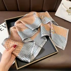 100% Silk Small Square Scarf Women Neckerchief Bandana White Yellow Flower 53cm