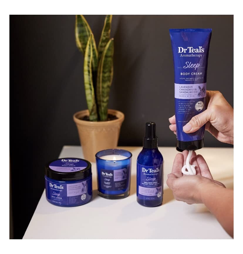 Dr Teal's Aromatherapy Set - Body Cream (8oz) and Spray (6oz) Bundle - Choose from Energy, Sleep, or Stress Relief (Sleep - Lavender, Chamomile, and Sandalwood)