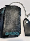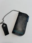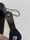 PLEASE READ DESCRIPTION BEFORE BUYY!! Black leather Snap Closure 5 Credit Card Slots Zipper Pocket 2 Full Bill Compartments Silver Hardware Long chain strap with 12” long Silver hardware