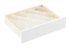 Diamond Drawer Organizer Keep drawers Tidy Fits most drawers Fits wire closet drawers May be trimmed to fit smaller drawers No tools needed Drawer in photos not included just organizer. These slide together easily. The organizer pieces are very flexible. Less wasted space with this organizer.You can make the grid fit nice and snug. This is a great product ! Made in USA