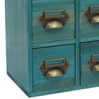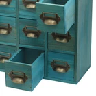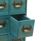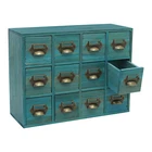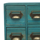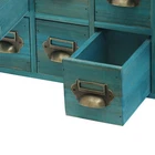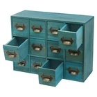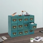 Drawers Storage Cabinet Desktop 12 Drawer Organizer Wooden Medicine Cabinet Blue Description A great storage cabinet can make your living experience more convenient and comfortable. Its premium materials ensure durability and strong load-bearing capacity. The 12 storage compartments provide ample space for storing small items, keeping your desktop tidy. Its elegant and vintage appearance also makes it a great decorative piece! Key Features Build to Last: This product is made of premium solid wood, plywood , and zinc alloy, and the surface is treated with spray painting technology, which is wear-resistant, scratch-resistant, and not easy to deform, ensuring a long service life. Storage Assistant: The 3-tier design with 12 storage compartments provides ample storage space for categorizing Chinese herbs, stationery, and other small office supplies, making your desktop more organized and improving work efficiency. Stable Structure: The thick materials and a sturdy frame structure ensure that it can remain stable in long-term use and has a load-bearing capacity(22.05 lbs), so you can store items with confidence. Space-saving: It adopts a narrow body design(6.3 inches) and has a vertical structure, which will not occupy much tabletop space. Convenient to Clean: Its surface is smooth and its structure is simple, so you can easily wipe off the dust with a damp rag (not included). Nice Gift: This practical and beautiful product is a great holiday or housewarming gift for family, friends, and lovers so that they can enjoy a more convenient life. Nice Appearance: The fresh blue, wooden textures, and metal handles enhance its rustic and vintage charm, making it not only a convenient storage cabinet but also a unique decorative piece. Ready to Use: This product does not require additional assembly and can be used immediately upon receipt, making it labor-saving and convenient. Buy with Confidence: We stand behind all our guests and look forward to assisting you with your purchase. It is our pleasure to answer your confusion and questions. The end of the story between us is not "we sell and you buy". Details Round Corners: They add to the beauty of the product while ensuring safer use. Comfortable Handles: They make it easier for you to open cabinet drawers. Application It is suitable for households, offices, small workshops, traditional Chinese medicine stores, etc. It is used to organize various items such as spices, medicines, jewelry, handicrafts, cosmetics, essential oils, small office supplies, tea bags, lipsticks, and more. Specification Color: Blue Shape: Rectangular Material: Solid Wood, Plywood, Zinc Alloy Process: Spray Painting Assembly Required: No Mounting Type: Tabletop Number of Compartments: 12 Load-bearing Capacity: 10kg/22.05 lbs Product Size: 42*16*31.7cm/16.54*6.3*12.48in Package Size: 46*36*20cm/18.11*14.17*7.87in Gross Weight: 4.8kg/10.58 lbs Net Weight: 4.56kg/10.05 lbs Package Included 1* 12 Drawer Storage Cabinet Notes Please check the product size before ordering. Please allow the slight color difference caused by the shooting light and the 1-3cm error due to manual measurement, and make sure you do not mind before ordering.