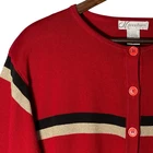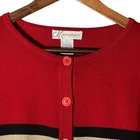 * Dressbarn Women Button Front Cardigan Size 22/24 Red Striped Long Sleeve * *Good Pre-owned Condition *Please see photos for approximate measurements (in inches), fabric make, washing instructions, and other notable details. *Purchased items are shipped out next business day.