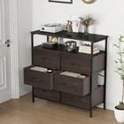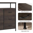 Roomy Storage Space: This bedroom dresser has 2 wide shelves, which help stack books, plants, or crafts, and 6 large drawers are enough to store your clothes, such as out-of-season clothes, bedding, etc., even you can DIY Drawer dividers to sort underwear, socks, ties Durable Material: The wooden top has a strong bearing capacity, while the 6 fabric drawers are more portable, breathable, and do not easily scratch the clothes, the MDF top combined with a metal frame, cross-support rods, and drawer support frames ensures stability of the bedroom chest of drawers Multifunction Drawer Tower: This chest of drawers in a closet or bedroom to organize clothes, use it as a baby dresser for kids to store diapers or formula or baby clothes, place storage drawers in entryways for storage of frequently used items unit Safe for Your Family: 4 adjustable plastic feet can protect your floor from scratches, and the included anti-tip accessories prevent accidents; Non-woven synthetic fibers are breathable and harmless, suitable for kids, teens, and adults Overall Dimensions: The dresser measures 31.49"L x 11.8"W x 32.08"H, 6 drawers can be used individually, and detailed instructions and numbered boards make assembly easy, allowing you to quickly control clutter
