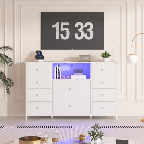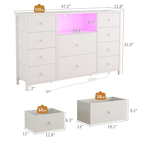 Menu 1. We require immediate payment. 2. We currently accept payment via eBay managed payments only. 3. Once payment is cleared, we will dispatch your shipment within 1-3 business days. Please refer to the "Shipping" tab for more information regarding shipping speed to your destination. Dresser for Bedroom with 10 Drawers, White Storage Organizer TV Stand for 55" TV with LED Lights and Sockets, Fabric Chest of Drawers with PU Finish for Kid Room, Entryway, Living Room, Hallway Product description Spacious Storage Space: This white dressing table comes with 10 fabric drawers, a spacious open shelf, and a wooden countertop to meet all your storage/exhibition needs. We offer two different sizes of drawers, customized for classified storage, which can hold messy toys, clothes, or blankets in the storage cabinet and keep the room clean and tidy. This TV stand is not limited to the bedroom, it seamlessly transitions to the living room, study, closet, and other areas. No matter w it is in your home, this 10 drawer dresser will help you add a touch of elegance and practicality to any environment TV Stand for up to 60" TVs: it's not just a dresser, but also a TV stand. Set this long dresser table as a beautiful TV stand for the bedroom. Its design can accommodate screens of 50 or 60 inches. Messy TV supplies and scattered DVDs can be hidden in deep drawers. Imagine setting up the LED lights on the TV stand and comfortably sitting on the sofa or bed with your family, enjoying movies. The TV stand with drawers creates a serene space for quality time and enhances the atmosp of a home theater Charging Station & LED Lights: This fabric dresser for bedroom is equipped with a built-in power socket and LED lights, placed in your home, creating a strong atmosp and making your home more fashionable and convenient. The color and brightness of the LED chests of drawers can be adjusted according to the needs of the scene. This storage organizer is equipped with a charging socket, which can easily meet your charging needs. You can easily charge your phone, TV, and other devices as needed Sturdy, Safe and Stable: Dimensions: 11.8"D x 47.2"W x 31.5"H. This drawer dresser is made of MDF & non-woven fabric with a thicken metal frame to ensure durability, and it includes an anti-tip kits to ensure stability and prevent falls. It also features a smooth PU surface for easy cleaning and maintenance. In addition, the adjustable feet adapt to a variety of floor surfaces and protect floors from scratches Easy to Assemble: No need to worry about installation issues! Assembly is fast and simple, including all necessary accessories and clear step-by-step instructions. Make it easy for you to assemble within 30 minutes. This TV stand is not only powerful in function, but also elegantly designed. The lines are simple, the appearance is modern, and it can seamlessly integrate into any home decoration, becoming a fashionable supplement to your living space PLEASE MESSAGE US IF YOU HAVE ANY OTHER QUESTIONS, AND MANY THANKS FOR READING ALL OF THIS. Copyright ©#. All Rights Reserved.
