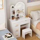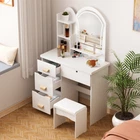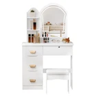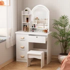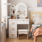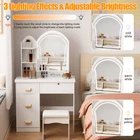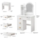 Description: Large Storage Space: The vanity desk features 4 drawers and multi open shelves, allow you to store your jewelry and makeup stuff. The open shelves and hidden shelves provide plenty of storage space to display cosmetic, nail polish, etc. Large Mirror & 3 Color Light Options: The makeup table is equipped with a large mirror, which can reflect your appearance more clearly and realistically from all angles. The LED light strips have 3 color light modes, and the brightness of each color can be adjusted. Meet your needs for different environments and makeup looks, allowing you to enjoy makeup experience like a star. Sturdy Construction: Sturdy construction means this vanity with lights and drawers is a top choice for your beauty station. With its minimalist and modern style, this simple vanity table displays an unmistakable aura, perfect for decorating your room with added glamor. Pairing Stool: Comes with a comfortable stool with a sponge cushion that perfectly matches the vanity table. This bench is very easy to store and fits perfectly under the table without bumping when not in use, conforms to the human body's sitting position, providing you a comfortable place for makeup and hairstyling. As A Gift: With its simple and elegant design, this dresser can be a practical and sturdy piece of furniture for your bedroom, bathroom, closet or hallway. You will have a more comfortable place to do your makeup. This dressing table will be an ideal gift for your loved ones on Valentine's Day, Mother's Day or Christmas. Item Name: Dressing Table Material: Wood Style: Simple Function: Makeup, Storage Installation: Easy Assembly Category: Dressing Table, Makeup Table, Storage Cabinet Features: 4 Drawers, LED Light Mirror, with Open Shelves Size Details: L: 80cm/31.5", W: 40cm/15.75", H: 135cm/53.15" (Approx.) Notes: Due to the light and screen setting difference, the item's color may be slightly different from the pictures. Please allow slight dimension difference due to different manual measurement. Package Includes: 1 x Dressing Table with Stool Posted by eBay Mobile