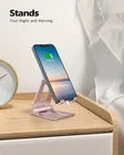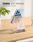 UNIVERSAL COMPATIBILITY: This phone stand works with all 4-8" Smartphones and e-readers, such as iPhone 11 Pro Xs Xs Max Xr X 8 7 6, Switch, Samsung Galaxy S10 /S10+/S9 /S9+/S8 /S8+, Google Nexus, Kindle. ADJUSTABLE & PORTABLE: The phone cradle is fully collapsible, it can be easily adjusted to ideal position, which is a good desk accessories while watching video, playing games, making phone call, viewing recipes, using Facetime. STURDY & PROTECTIVE: The cell phone stand is made of high quality premium aluminum, it stays firmly in place, hold your phone steadily, no worry any wobble at all. The rubber pads can protect your phone from any scratching and sliding. CASE FRIENDLY: The hook width of the stand is 19mm, no need to remove your phone case, which is long enough to hold your device with HEAVY CASE on, please make sure the thickness of your device is no more than 19mm (0.74"). WARM TIPS: Please set your device(4"-6") in landscape or portrait mode, and set the device (6"-8") in landscape mode, which will provide more stability. Product Description