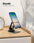 Nulaxy Dual Folding Cell Phone Stand, Fully Adjustable Foldable Desktop Phone Holder Cradle Dock Compatible with Phone 16 15 14 13 12 11 Pro Xs Xs Max Xr X 8, Nintendo Switch, All Phones Brand Nulaxy Color A-Black Form Factor Cell phone stand holder Compatible Devices Models Compatible Phone Kindle, Kindle Oasis, New Kindle, Kindle Paperwhite3/2/1, Kindle Voyage, Kindle Touch, Kindle dx/dxg, Kindle fire 1/2, Kindle hd/hdx; Edge/S6 Edge/S6 Edge+, Note 8/7/5/4/3, Nexus 6P/5X/9, LG G6/G5/G4/G3/V20, HTC 10, HTC One A9/M9, BLU G9 Pro, Motorola One Zoom Droid RAZR MAXX, Blackberry Nexus 5X/ 6P, Nexus 5X/ 6P Huawei Mate 9/ Mate 10/ P10/ P20/ P20 Pro/ Mate RS Xiaomi MI 6/ MIX 2/ MIX 2S Nokia 7/7 Plus/Nokia 8., Apple iPhone 13 Mini, iPhone 13, iPhone 13 Pro, iPhone 13 Pro Max, iPhone 12 Mini, 12, 12 Pro, 12 Pro Max, 11, 11 Pro, 11 Pro Max, XS Max, XS, XR, X, 8 Plus, 8, 7 Plus, 7, 6S Plus, 6S, SE, 6, 5S, 5C, 5;, Samsung Galaxy S21 Plus, S10, S10e, S9, S8, S8+, S7, S6, S6 Edge S5, S4, S3, Note 5 4, 3, 2, 1, C9 C7 C5 A8 A7 A5 A3 J7 J5 J3; LG G7 ThinQ, V50 ThinQ, V40 ThinQ, V30, V20, G6, G8s ThinQ, W10, V30s+, G4 One, V30s, Q60, W30, Stylo 4, X Power, Q6+, K40, Q7, X300, Stylo 3, K8, Q7 Plus, X2, Aristo, Q7α, Q8; Kindle, Kindle Oasis, New Kindle, Kindle Paperwhite3/2/1, Kindle Voyage, Kindle Touch, Kindle dx/dxg, Kindle fire 1/2, Kindle hd/hdx; Edge/S6 Edge… About this item Universal Compatbility: This phone stand works with all 4-8" Smartphones and e-readers, such as iPhone 11 Pro Xs Xs Max Xr X 8 7 6, Switch, Samsung Galaxy S10 /S10+/S9 /S9+/S8 /S8+, Google Nexus, Kindle. Adjustable & Portable: The phone cradle is fully collapsible, it can be easily adjusted to ideal position, which is a good desk accessories while watching video, playing games, making phone call, viewing recipes, using Facetime. Sturdy & Protective: The cell phone stand is made of high quality premium aluminum, it stays firmly in place, hold your phone steadily, no worry any wobble at all. The rubber pads can protect your phone from any scratching and sliding. Case Friendly: The hook width of the stand is 19mm, no need to remove your phone case, which is long enough to hold your device with HEAVY CASE on, please make sure the thickness of your device is no more than 19mm (0.74"). Warm Tips: Please set your device(4"-6") in landscape or portrait mode, and set the device (6"-8") in landscape mode, which will provide more stability. Cell Phone, Smartphone, Telephones, Kindle, Mobile Phone, Smart Phones, Small Palmtop, All Phones: Apple iPhone, Samsung Galaxy, Sony, Google Pixel, Huawei, Honor, HTC, Nokia, Xiaomi, Microsoft, Lumia, BlackBerry Cell Phone, Smartphone, Telephones, Kindle, Mobile Phone, Smart Phones, Small Palmtop, All Phones: Apple iPhone, Samsung Galaxy, Sony, Google Pixel, Huawei,…