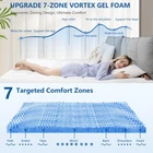 【Upgrade 2 In 1 Dual Layer Design 】memory foam mattress topper is dedicated to bring you the top sleep experience, the perfect fusion of 2 inch vortex gel memory sponge and 1 inch air layer quilted snow pile filled mattress. Double layer design, could provides comfort and stress-relieving support at the same time, then you can get a sleep experience like sleeping in the cloud 【Relieve Pain & Improve Sleep】The memory foam has 7 zones, different zones have different effects, perfectly ergonomic. It will evenly distribute your weight to relieve pressure points, keep your spine naturally aligned and reduce hip, back and neck pain, thus increasing your deep sleep by 30% 【Cooling and Breathability 】The cooling mattress surface is designed with a 3D breathable mesh for superior breathability. This gel-infused foam memory cover carries away heat, creating a cool sleeping surface that can regulate your body temperature throughout the night. Enjoy a peaceful, heat-free night's sleep 【Safe and Skin-Friendly 】The pillow top mattress topper uses ultra-soft 3D+7D snow velvet instead of fiber, which protects the skin of the body. And through the OEKO-TEX STANDARD 100 and CertiPUR US certification, can ensure hypoallergenic and skin-friendly, to give you a safe and comfortable sleeping environment 【Thoughtful Deep Pocket 】We include an 8-21 inch stretchable deep pocket which wraps perfectly around your mattress. You don't have to worry about your mattress shifting even if you roll over during the night.In addition, the pillow top is machine washable with a gentle cycle of cold water and low temperature drying for easy maintenance 【Packaging and Service 】Due to vacuum packaging, it may appear thin after opening the package. Please place it in a well-ventilated place for 24-48 hours to restore its shape and thickness. We will provide 10 years after-sale service. You can contact us directly for a satisfactory solution