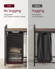 [2 Compartments for Divided Storage] This laundry hamper has a total capacity of 24.2 gallons (92L), with each liner holding 12.1 gallons (46L). Its 2-compartment design enables you to organize your laundry by type and separate light laundry from dark ones [Laundry Hamper with Shelf] The shelf of this laundry basket provides extra space to organize detergents or toiletries, while its slatted design allows air to flow through for good ventilation, keeping your laundry odor-free [Pull-Out and Removable Liners] Each liner is equipped with a plastic bottom panel to prevent sagging, and thanks to the hook-and-loop fastener, you can effortlessly pull out and remove these liners to easily transport them to the washing machine [Robust & Stable] This laundry sorter features a sturdy 0.8” steel tube frame and MDF panel, supporting up to 44 lb on its top shelf. Moreover, each liner is crafted from water-repellent Oxford fabric, while the four adjustable feet provide added stability [Versatile] This versatile laundry sorter fits seamlessly into any room, whether it's your laundry room, bathroom, or bedroom. Should there be any water on the shelf during use, immediately wipe it off with a dry cloth