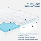 2 In 1 Adjustable and Convenient: 4-inch dual-layer memory foam cal king mattress topper combines a 2-inch quilted pillow top mattress topper with a 2-inch gel foam mattress topper to deliver the balance of softness and support. Choose the right one according to different scenarios and needs! Improve Sleep and Relieve Pain: Cal king size mattress topper layer conforms to your body’s natural contours, alleviating pressure on the neck, shoulders, and back. It promotes proper spinal alignment, reducing discomfort and allowing for deep, restorative sleep. Breathable and Soft: Premium 800gsm polyester microfiber filled cooling cal king size mattress pad. The pillow top mattress pad ensures a fluffy, luxurious feel while maintaining excellent breathbility, keeping you comfortable and fresh throughout the night. Deep Pocket Fit for Secure Placement: Cal king mattress topper features a 360° elastic skirt that fits mattresses up to 21 inches deep. It stays firmly in place, ensuring consistent comfort without slipping or shifting, even with movement during the night. Easy Care and Maintenance: Pillow top mattress topper cover is machine washable for effortless cleaning. Simply wash in cold water and tumble dry on low. Allow 48-72 hours for the memory foam layer to fully expand and air out before use, ensuring the best sleeping experience. Product Description DEEP POCKET Fits mattress between 8" to 21" deep. SOFT AND BREATHABLE Filled with 800gsm premium polyester microfiber, extreme soft, fluffy, this mattress cover provides maximum comfort. PRESSURE RELIEF Memory foam conforms to the body, offering support and relieving pressure points for a more comfortable sleep.