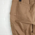 No holes or stains. Excellent used condition. Zipper fly. 8 total pockets, including hidden zip pocket in back. Durable 8oz fire hose material. All measurements are approximate and taken flat across Waistband 23 inches Rise 11 inches Inseam 31 inches