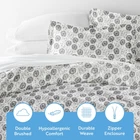 The Home Collection by I enjoy home is designed with your comfort in mind. Made of the finest double-brushed microfiber yarns creating a new standard in softness and breathability. Our premium yarns are two times more durable than cotton, completely wrinkle-free, and perfect for all seasons.Die Home Collection von I Enjoy Home wurde für Ihren Komfort entworfen. Hergestellt aus feinsten doppelt gebürsteten Mikrofaser-Garnen, die einen neuen Standard in Weichheit und Atmungsaktivität schaffen. Unsere Premium-Garne sind zweimal haltbarer als Baumwolle, absolut faltenfrei und perfekt für alle Jahreszeiten.הקולקציה הביתית של I enjoy home מעוצבת תוך מחשבה על הנוחות שלכם. עשוי מחוטי מיקרופייבר מוברש פעמיים הטובים ביותר היוצרים סטנדרט חדש ברכות ונושמות. החוטים האיכותיים שלנו עמידים פי שניים מכותנה, ללא קמטים לחלוטין, ומושלמים לכל עונות השנה.A Home Collection by I enjoy home é projetada pensando no seu conforto. Feito dos melhores fios de microfibra com escovaço dupla, criando um novo padro de suavidade e respirabilidade. Nossos fios premium so duas vezes mais duráveis do que algodo, completamente sem rugas e perfeitos para todas as estações.I enjoy home家居系列的設計考慮了您的舒適 採用最頂級的雙層刷毛超細纖維紗線製成,在柔軟度與透氣性方面創造了新標準 我們的優質紗線比棉更耐用兩倍,完全不起皺,適合所有季節I Enjoy home的家居系列设计充分考虑了您的舒适 采用优质双磨毛超细纤维纱线制成,创造了柔软和透气的新标准 我们的优质纱线比棉耐用两倍,完全不起皱,适合所有季节I enjoy Home의 홈 컬렉션은 편안함을 염두에 두고 디자인되었습니다. 최고급 이중 브러시 극세사 원사로 제작되어 부드러움과 통기성의 새로운 기준을 만듭니다. 저희 프리미엄 원사는 면보다 두 배 더 내구성이 뛰어나며 주름이 생기지 않으며 모든 계절에 적합합니다. LUXURIATE IN UNMATCHED COMFORT: Elevate your sleep experience with our exquisitely soft and cozy duvet cover queen. Crafted from premium microfiber, it envelops you in a cocoon of comfort, ensuring a blissful night's rest. TRANSFORM YOUR BEDROOM WITH STUNNING STYLE: Be your own inner interior designer with our wide array of captivating prints and elegant solid colors. From vibrant florals and farmhouse styles to geometric patterns, our duvet covers effortlessly breathe life and sophistication into any bedroom. UNCOMPROMISING QUALITY AND DURABILITY: Our duvet cover set is meticulously crafted to ensure long-lasting performance. With fade, stain, and shrink resistance, it retains its impeccable appearance wash after wash, offering you the perfect blend of luxury and durability. EFFORTLESS MAINTENANCE FOR BUSY LIFESTYLES: We understand the demands of modern life, which is why our duvet cover set is designed for convenience. Machine washable in cold water and quick-drying on tumble dry low, it saves you valuable time and effort, allowing you to spend more moments enjoying the comfort and beauty it brings to your sleep sanctuary. THOUGHTFUL DESIGN FOR CONVENIENCE: Our duvet cover set includes corner ties to secure your comforter in place, preventing it from shifting or bunching up inside.