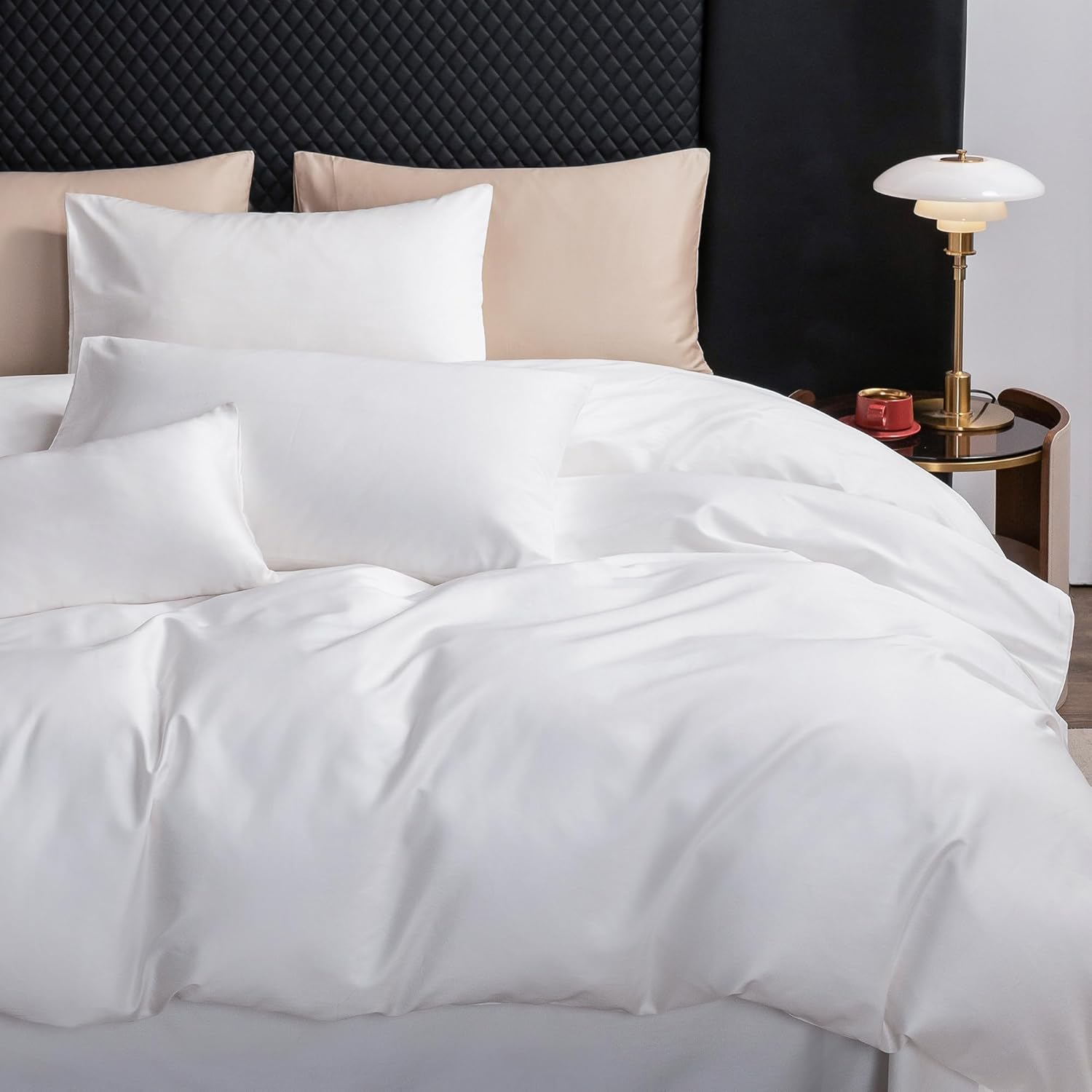 Menu Other Items Feedbacks About Us Contact Us Add To Favorites Duvet Cover Set 100% Extra Long Staple Cotton 600 Thread Count Silky Sateen Smooth Luxury Soft Breathable Durable Hotel Quality Bedding, 3 Pieces (Bright White, King 104"X90") Material: Made of 100% long-staple cotton for durability, softness, and a more luxurious feel for longer. Sateen weave is exclusively made of high-quality 600 thread count which creates a lustrous, durable fabric like Egyptian cotton. Stylish: It's silky to the touch with a slight sheen. Simple solid pastel purple is most easily comparable to any color of your room decor. Great for everyday use, this duvet cover set offers smooth and soft comfort–all year-round. Awesome Details: Duvet Cover has a hidden zip closure barely noticeable; 8 interior corner ties to keep duvet/comforter in place; Pillow Cases have envelope end to tuck the pillow inside. King Size Duvet Cover Set Package Includes: Duvet Cover (1 piece): 104 in. x 90 in.; Pillow Cases (Standard 2 pieces): 20 in. x 36 in.; Duvet/comforter inside is not included. Easy Care: Machine wash cold, gentle cycle only, using mild, liquid Laundry Detergent. Do not bleach. Iron on low heat if needed. Tumble dry low. Note: Do not overload washer and dryer. Item Specification Color Bright White (No Comforter) Pattern Solid Material Cotton Size King (104"x90") FREE SHIPPING We are always working hard to ensure your package arrives as soon as possible. Please understand that some factors like weather, high postal traffic, and the performance of shipping companies are outside of our control. We offer free shipping to the lower 48 states. We do not accept P.O. Boxes. Please provide a physical address. If you have a problem or question regarding your transaction please contact us immediately. We will work with you to resolve any problem you may have. Thank you