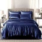 Number of Items in Set: Four-Piece Type: Duvet Cover Set Color: Navy Blue Material: Satin Insulation: Warm Theme: Luxury Thread Count: 201-400 Brand: SAFHOME Features: Deep Fitted Item Length: 102 Care Instructions: Hand Wash, Machine Wash Pattern: Solid Color Set Includes: Duvet Cover, Fitted Sheet, Pillowcase Fill Material: 100% Silk Drop Length: 19 in Room: Bedroom Size: King Closure Type: Zip Style: Modern Department: Unisex Baby & Toddler, Kids, Teens, Adults Country/Region of Manufacture: India Item Width: 90