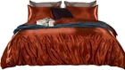Duvet Cover Set 4PC Satin King Rust (DuvetCover,PillowCase,Fitted-19"deep)