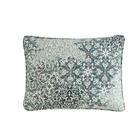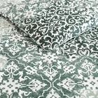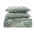 Ornamental design elements intersect and merge in a monochromatic mix of pattern and texture. This exuberant flow of pattern is muted and calmed by a minimal palette of Mossy greens on a warm white cotton background. The overall textural effect is both serene and visually interesting and will add a unique, sophisticated look to your bedroom. MATERIAL: 100% Cotton INCLUDES: 1 duvet cover and 2 shams FEATURES: Duvet cover cover features a zipper closer and four inner corner ties- duvet cover insert not included DESIGN: Green ornamental design on a white ground DIMENSIONS: Full/queen set measures: Duvet Cover- 88”L x 92”W, Standard Shams- 21”L x 27”W CARE: Machine Washable- Large Capacity Machine Suggested
