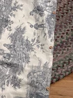 Stunning Classic Design for Your Bedroom Retreat Elevate your bedroom with this timeless Toile de Jouy duvet cover set. This set features a high-quality, intricate monochrome landscape print in a sophisticated grey-on-cream palette. The detailed pattern showcases classic French Country scenes, including pastoral landscapes, majestic trees, and serene village life, offering a vintage, heritage feel that never goes out of style. Product Features: Design: Traditional Toile de Jouy "Country Life" motif with highly detailed engravings of trees, figures, and architecture. Dimensions: Approximately 90 inches, perfect for a generous Full or Queen-sized bed. Material: Crafted from a durable and soft cotton-blend fabric, designed for both comfort and long-lasting use. Colorway: Zinc Grey / Charcoal on a warm Ivory/Cream base—a versatile neutral that complements any Shabby Chic, Farmhouse, or Traditional decor. Versatility: Ideal for a primary bedroom, guest room, or as a statement piece in a cottage-style interior. Condition & Quality: This piece displays the high-end look of premium brands like Waverly. The fabric is crisp with a beautiful drape, making it an excellent centerpiece for a layered, cozy bedding ensemble.
