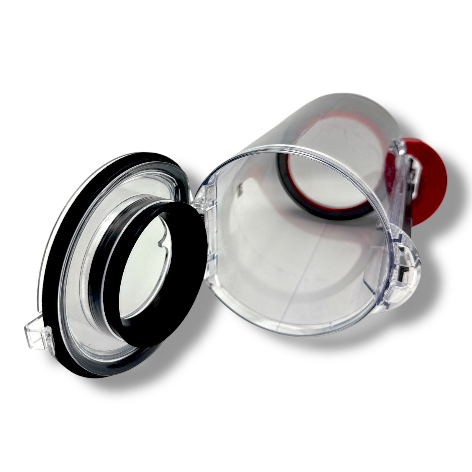 This is a Dyson V15 Dust Bin Vacuum Canister designed for the Absolute Animal Cordless Cleaner. The canister has a capacity of 0.5 L and is made of plastic. It is compatible with the Dyson V15 model and features a Click Lock system for easy cleaning. The canister is lightweight, clear in color, and suitable for stick/handheld vacuums. It includes a 1-month manufacturer warranty and is easy to dry and maintain.