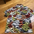 Make a statement with this Ed Hardy button-up shirt featuring a bold tiger print in a vibrant multicolor design. Perfect for a casual day out or a party, this shirt is made from lightweight and comfortable rayon material that is easy to care for and quick-drying. The short-sleeved shirt is designed with a collared neckline and a regular fit, making it suitable for any occasion. Chest measures 23 inches across Men’s size large new with tags Sold as is No returns