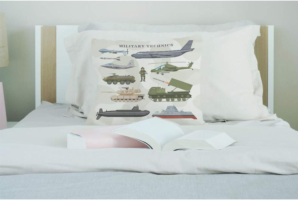 EKOBLA Military Technics Throw Pillow Cover Camouflage Air Multi-a314 Product Details Pattern: Print Material: Cotton Linen Color: Multi-a314 Product Dimensions: 18"L x 18"W Style: Modern 1.PRODUCT SIZE: This soft pillowcase is 18x18 Inch. It is ONLY the pillow cover, WITHOUT insert. 2.PRODUCT MATERIAL: This square pillow cover is made of High Quality cotton linen material. Eco-friendly, Thick and Comfortable. 3.SUITABLE OCCASSION: This decorative throw pillow case is perfect match for couch, sofa, chairs, bed, patio furniture, bench, floors, divan. Perfect seat in dining room, living room, kids room, bedroom, sitting room, cars, home, office, bar, cafe, gym, balcony, lawn & garden etc. 4.PRODUCT FEATURES: Invisible zipper closure for an elegant look and easy to change and wash. Both sides are printed and the invisible zippers in the bottom are classy, those will help the covers easily stand up to the frequent removal and fill. 5.WASHING MODE: Machine washable in cold water, delicate cycle, dry flat or hang dry only, do not bleach, do not dry in high heat, do not iron.