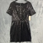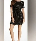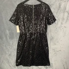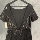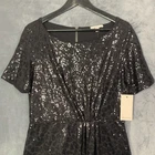 ELLA MOSS Anthropologie Womens Black Cocktail Dress Sequins Gathered Waist Sz L Approximate measurements in inches Underarm to underarm: 19 Waist: 15 Length: 35 Hips: 21 Sleeve: 9 1/2 Hem: 21 1/2 B10
