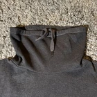 This Banana Republic Eco Pullover is a size Large sweater in a solid gray color. It features a cowl neck with neck ties, raglan sleeves, and a relaxed fit. Made from 100% cotton in a tight-knit fabric, this pullover is machine washable and suitable for all seasons. With a classic outdoor theme, it is ideal for travel or casual wear during winter, fall, or spring.