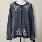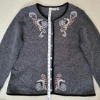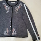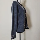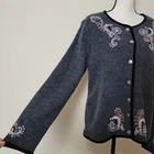 Croft & Barrow Wool Blend Embroidered Button Front Cardigan Sweater Size-Large Color-Gray, Brown, White 7 Silver Metal Button Front Closure Long Sleeve Collarless Round Neck Velvet Trim Accent 70% Acrylic 30% Wool Machine Wash/Tumble Dry Measurements Laying Flat Approximate: Shoulder To Shoulder-18" Armpit To Armpit-22" Sleeve-25.5" From Shoulde Seam To Wrist Length-24" Cozy Warm Pre-owned In Excellent Condition. No Pulls, Stains, Holes, Etc Every Effort Has Been Made To Accurately Describe & Photograph This Item. Some Colors Vary Depending On Lighting & Device Used To View. Please Reach Out If You Have Questions Prior To Purchase. I Am Happy To Help. Shipping From A Smoke & Pet Free Facility. USPS Ground Advanatage