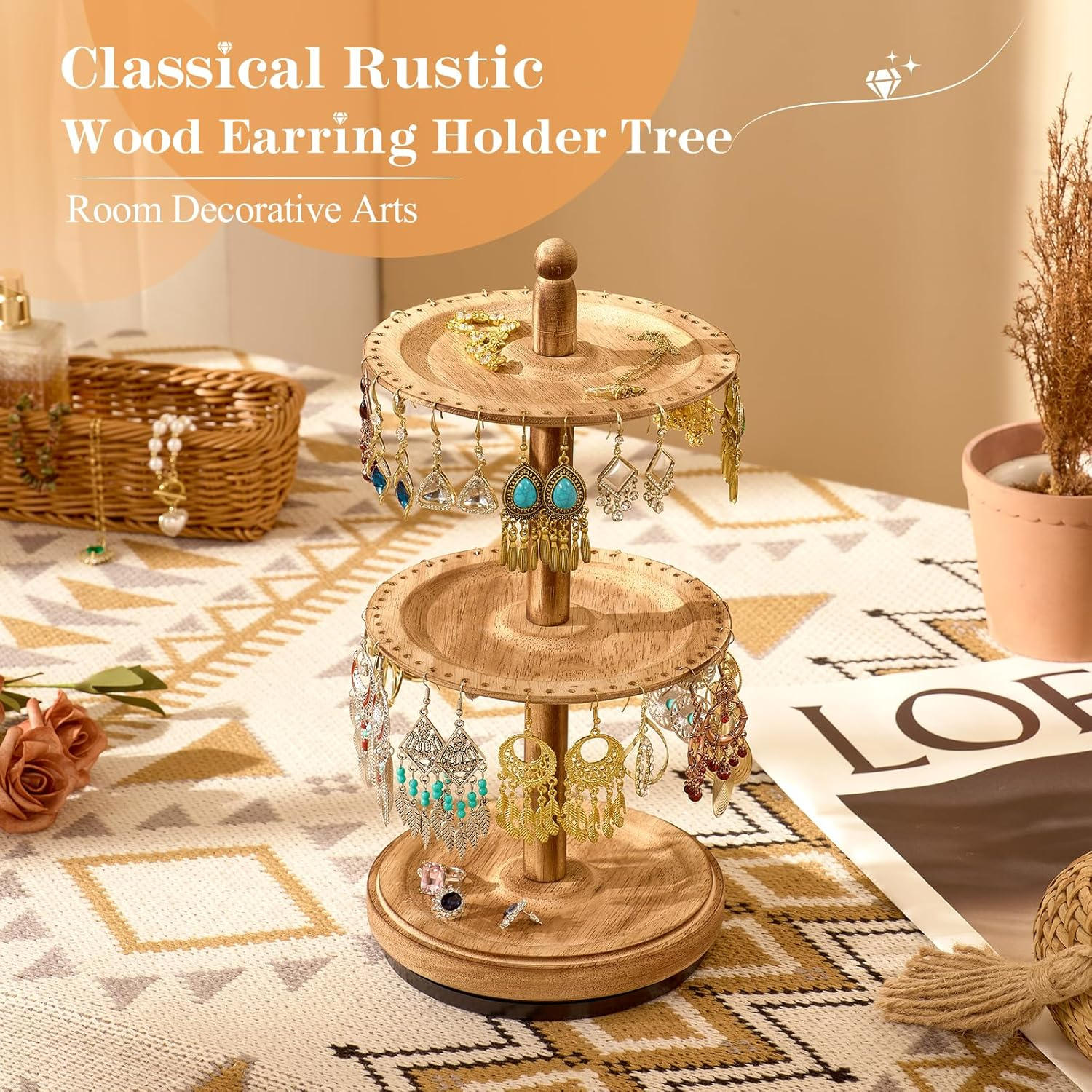 Installation tip: Use the rod with shorter screw to install on the base Elegant & Rustic Earring Holder- This earring holder organizer is made of solid wood with a carbonized brown surface, which is rustic and pastoral style. The earring organizer will be a beautiful storage stand and elegant room art decoration Rotating Earring Stand- the base of the jewelry earring holder stand can rotate 360 ° to fully display the beautiful earrings, and it is also convenient for take the earrings and customers to choose them Ideal Choice for Her: If she has many beautiful earrings but they are not organized, this earring holder organizer will be an ideal gift for her. Give it to your wife, daughter, girlfriend or mother, Valentine's Day, birthday or Christmas Stable Structure & Practical - The 2-tier earring holder tree is very unique in structure, not only beautiful but also practical, it has a large capacity to hang 102 earrings, and the structure of the tray makes the earring holder organizer not easy to tilt or overturn Easy to Assemble & Carry - No tools required, manual rotation can be installed, convenient to disassemble and carry. This provides convenience for vendors and sellers who need a portable jewelry earring holder Product Description BNING Earring Holder Organizer, Classic Rustic Decor Design Rotating Earring Holder-360 ° rotating base for easy access to earrings Elegant & Rustic Earring Holder-A beautiful storage stand and elegant room art decoration Easy to Assemble & Carry-No tools required, manual rotation can be installed Stable Structure & Practical -The structure of the tray makes the earring holder organizer not easy to tilt or overturn. PRODUCT SPECIFICATIONS Material: Wood Finish: Carbonized Brown Dimensions: 13 H × 6.3 W × 6.3 L (inches) Weight: 1.3 LB