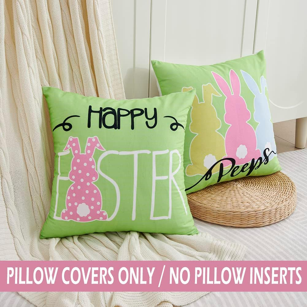 Store New Arrivals Add to Favorite View Feedback Contact OliverStore has been in the US market for over 5 years and offers free delivery to the customer's home with professional customer service Easter Bunny Throw Pillow Covers 18X18 Set of 2 Happy Easter Bunny Decorations Peeps Decor for Home Couch Sofa and Outdoor Porch Description Polyester 【Easter Bunny Decorations】 Package included: Set of 2 Easter Peeps Decorative Throw Pillow Covers 18x18 Inch (WITHOUT THE PILLOW INSERT). TIPS: Pattern is only on the front and no printing on the back. Back and background is PURE WHITE color. Since it is hand cut and sewn, please allow 0.5 inch size deviation. 【Happy Easter & Peeps Unique Cute Design】Replace your old pillows without throwing away the expensive and comfortable down pillow inserts, these farmhouse decorative easter rabbit throw pillow covers are gonna to bring holiday theme to your home. Suitable for indoor or outdoor use, such as sofa, porch, couch, office, bedroom etc. These bright color pillow covers are not waterproof! 【Easter Bunny Pillow Covers 18x18 Set of 2】Made of white soft polyester fabric, extra soft, in addition to being used as a decorative seasonal holiday pillowcase, it can also be used for bedding. Relatively thick, no pungent smell and the pattern will never fade. Hand Washing or Machine Wash Cold Separately, Gently Cycle Only, No Bleach, Tumble Dry, Do Not Iron and it'll look brand new. 【Vibrant & Bold Colors】 These bright and colorful easter peeps throw pillow covers are unexpectedly beautiful and will let you get many compliments from friends and relatives. Please fold the pillow insert in half and insert it into the pillowcase. (PILLOW INSERT IS NOT INCLUDED.) Hidden zipper at the bottom works smoothly with fine stitches. 【Easter Gift】 A good gift idea for New Home House Warming or Easter Holiday Party Decorations. A good gift idea for New Home House Warming or Easter Holiday Party Decorations. Great addition for cheerful Spring decor Our happy easter throw pillow covers can help you to refresh your room, easily matches with other holiday seasonal home decor. SIZE 12x20/18x18/20x20 inches, Due to manual cutting and sewing, please allow some deviation in size. WASHING GUIDANCE Hand washing or Machine Wash Cold Separately, Gently Cycle Only, No Bleach, Tumble Dry, Do Not Iron. TIPS 1. Cushion cover ONLY (NO Insert) No Filler. 2. Hidden zipper closure, one-sided pattern printed, back and background is solid white. 3. Please fold the pillow core in half and insert it slowly into farmhouse pillow cover when replacing. APPLICATION Suitable for indoor & outdoor use, such as sofa, car, couch, office, bedroom etc. Good To Know Before You Buy: 1. The real color of the item may be slightly different from the pictures shown on website caused by many factors such as brightness of your monitor and light brightness. 2.All the measurement are handmade, there may be 0.5-0.8 inch deviation. Package Included: Set of 2 Bright Color Cute Happy Easter and Peeps Pillow Covers Item model number Easter Pillow Covers Style Modern Number of Items 2 Pattern Print Country of Origin China Theme Holiday Number of Pieces 2 Unit Count 2.0 Count Room Type Office, Bedroom Batteries required No Product Dimensions 18"L x 18"W Material Polyester Shape Square Closure Type Zipper Item Weight 5.9 ounces Occasion Holiday Special Feature Fade Resistant Color Happy Easter and Peeps Pillow Type Throw Pillow Recommended Uses For Product Office, Car, Outdoors, Home Fabric Type Polyester Product Care Instructions Hand Washing or Machine Wash Cold Separately, Gently Cycle Only, No Bleach, Tumble Dry, Do Not Iron and it'll look brand new. Size 18" x 18" (Pack of 2) ABOUT US We offer the best prices around on high quality products. Our E-store includes media such as books, movies, music and games while offering electronics, toys, sporting apparel, clothing, tools, general home, garden items and more. SHIPPING We are always working hard to ensure your package arrives as soon as possible. Please understand that some factors like weather, high postal traffic, and the performance of shipping companies are outside of our control. We offer free shipping to the lower 48 states and ship within 2 business days of payment, usually sooner. We do not accept P.O. Boxes. Please provide a physical address. For shipping outside of the continental USA, we only use eBay's Global Shipping Program. The item is shipped to KY and then sent to the rest of the world. International customers are responsible for all duties and taxes. Continue to 'check out' to calculate costs for shipping the item to your country. Messages regarding eBay's Global Shipping Program MUST be directed at eBay EXCLUSIVELY. RETURNS We offer a 30-Day Return Policy on items in which you are not completely satisfied with. You have the option of a full-refund or an exchange of the item. No returns are available on items shipped outside of the USA PAYMENT We accept PayPal. CONTACT US This page content is yet to come Please ad us to your favorite seller and visit again later Thank You CUSTOMER SATISFACTION We try our very best to make sure every customer is completely satisfied. If there's a problem, message us! We're happy to help. WE ACCEPT