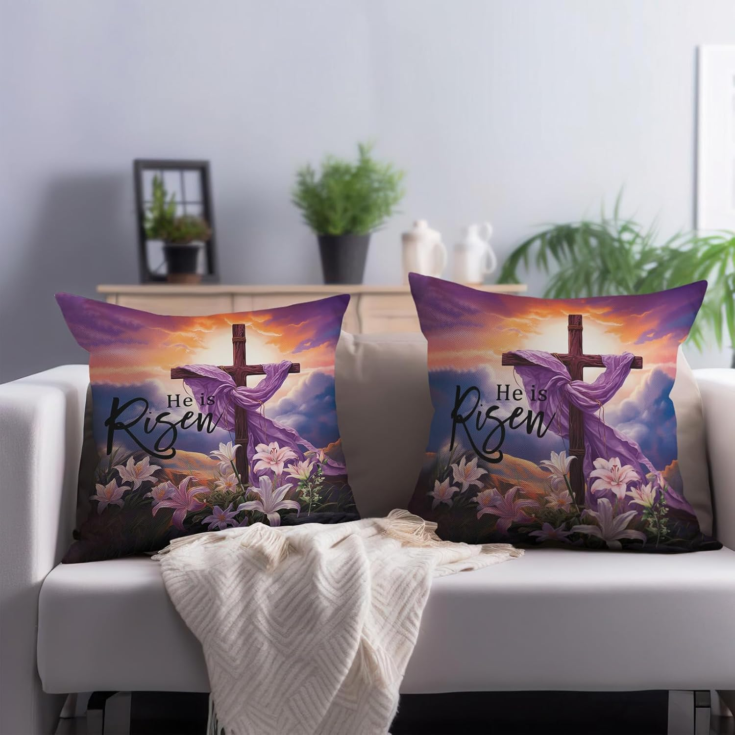 Store New Arrivals Add to Favorite View Feedback Contact Fast deliveries to the customer's home Quality customer service Sophia makes the customers happy! Easter Day Pillow Covers 18 X 18 Inch Set of 2 He Is Risen Cross Throw Pillow Cover Spring Farmhouse Pillow Cases for Home Sofa Couch Decoration Cushion Case Description Linen Size and Package: The package includes 2 pieces Easter Day pillow covers, no insert and filler. This purple Easter pillow cover fits 18 x 18 inch insert, Each listing size refers to the pillow insert size. Material: The He is Risen pillow covers are made of cotton linen, which is comfortable and soft to the touch. It will easily last for multiple seasons if you taken care of. Hidden Zipper: Our Easter Cross pillow covers, color-coordinated hidden zipper closure brings an elegant appearance, and it's super easy to stuff pillows/fillers into this pillow covers. Exquisite edging technology, it is not easy to open the line, not easy to deform, not easy to pilling. Home Decoration: These Easter flowers decorative pillow cases are designed with shamrocks as the theme, printed on both sides. It is not only apply to indoor places such as office, bedrooms, but also suitable for outdoor places such as yard, garden. Washing Tips: Our spring sunrise cushion case holiday pillow covers can be gentle machine-washed in cold or hand-washed in low temperature. Please iron at low temperature, do not dry, do not bleach. Product Specification: Size: The size of our Easter Day pillow cases is 45 x 45 cm/18 x 18 inch. Material: The standard size of the Easter Day He is Risen pillow cover is made of excellent cotton linen. Package includes: Package contains 2 Easter Cross pillow covers/shells, NO PILLOW. Product Features: 1. Print on the both side, vivid colors and clear image brings warm and elegant look to you. 2. Invisible zipper closure. Pillow cover’s rim tailors neatly. It will not decrease the beauty of pillow covers. 3. Thanks to the smooth zipper, the pillow can be easily putted in and removed from the lid, making it very convenient. No wrinkles. 4. This cotton linen fabric is not only more durable, but also non-staining, non-wrinkling, odorless, comfortable and breathable, and harmless to the skin. It has a better visual experience and feel. Application: This purple Easter sunrise throw pillow cover will refresh your room, is easy to mix and match with other holiday decorative pillows or holiday decorations. Anyway, wherever you use it, we only hope it can improve your life quality. Warm tips: 1. Please use mild detergent. 2. Dry flat or hang to dry. 3. Do not use bleach. 4. Due to measuring and sewing, there might be 1-2 cm size difference, hope you kindly understand. 5. The actual color of the spring pillowcases maybe different from the picture shown due to the different screen of display or reflecting light when shooting. Item model number 1-150 Style Easter Day Number of Items 2 Color He is Risen Pattern Print Product Dimensions 18"L x 18"W Material Linen Country of Origin Italy Theme Easter Item Weight 5.6 ounces Batteries required No Shape Square Seasons All-Season Special Feature Fade-Resistant, Warm Touch Fabric Type Linen Size 18" x 18" (Pack of 2) ABOUT US We offer the best prices around on high quality products. Our E-store includes media such as books, movies, music and games while offering electronics, toys, sporting apparel, clothing, tools, general home, garden items and more. SHIPPING We are always working hard to ensure your package arrives as soon as possible. Please understand that some factors like weather, high postal traffic, and the performance of shipping companies are outside of our control. We offer free shipping to the lower 48 states and ship within 2 business days of payment, usually sooner. We do not accept P.O. Boxes. Please provide a physical address. For shipping outside of the continental USA, we only use eBay's Global Shipping Program. The item is shipped to KY and then sent to the rest of the world. International customers are responsible for all duties and taxes. Continue to 'check out' to calculate costs for shipping the item to your country. Messages regarding eBay's Global Shipping Program MUST be directed at eBay EXCLUSIVELY. RETURNS We offer a 30-Day Return Policy on items in which you are not completely satisfied with. You have the option of a full-refund or an exchange of the item. No returns are available on items shipped outside of the USA PAYMENT We accept PayPal. CONTACT US This page content is yet to come Please ad us to your favorite seller and visit again later Thank You CUSTOMER SATISFACTION We try our very best to make sure every customer is completely satisfied. If there's a problem, message us! We're happy to help. WE ACCEPT